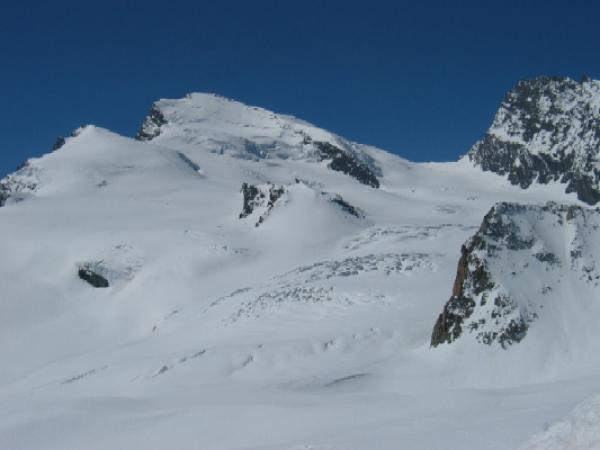Der Allalingletscher ist noch gut eingeschneit, morgens fester Firn. Ab Adlerpass windgepresst, Harscheisen sind für das erste Stück ab Adlerpass empfehlenswert. Skidepot am Gipfelgrat, dann problemlos zu Fuss bis zum höchsten Punkt.
