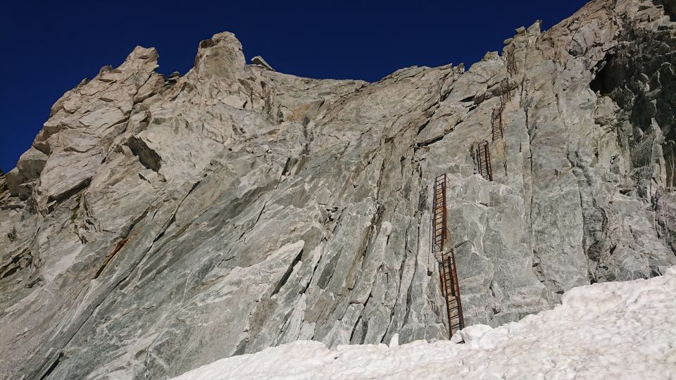 Super verhältnisse, die leitern zur oberen bächlilicke sind bündig mit der schneehöhe und es gibt sozusagen keinen schrund. Fels trocken. Sind jedoch aus persönlichen gründen kurznach der lücke umgekehrt. Dh können nichts sagen über den teil ab p. 3129.