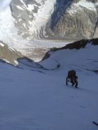 Eigentlich hatten wir Studerhorn nordwand machen wollen, aber dieser war vom randkluft ab blank eis. Deswegen suchten wir eine andere route zur Oberaarjochhutte.