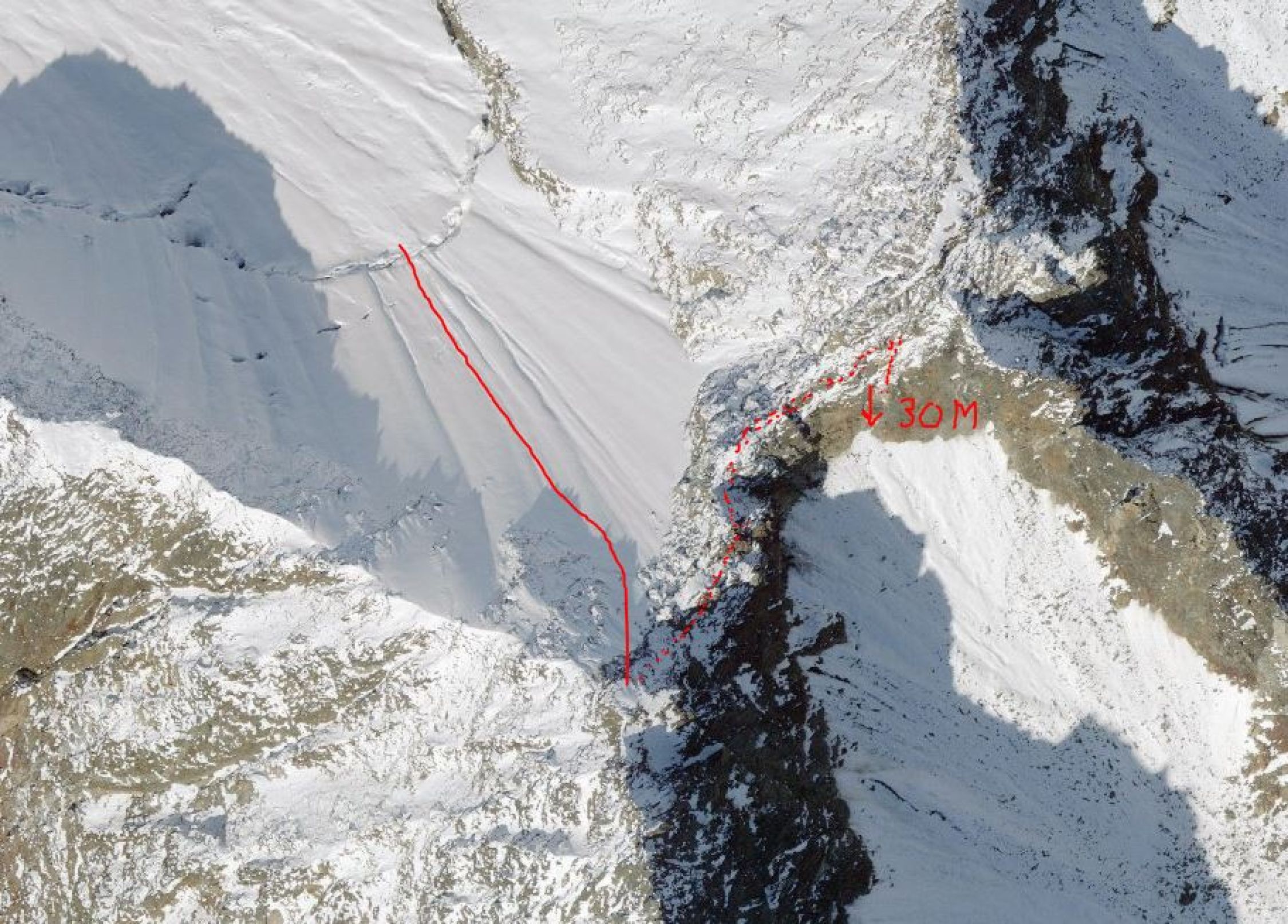 Grunerhorn (3436m): nordflanke zur punkt 3463