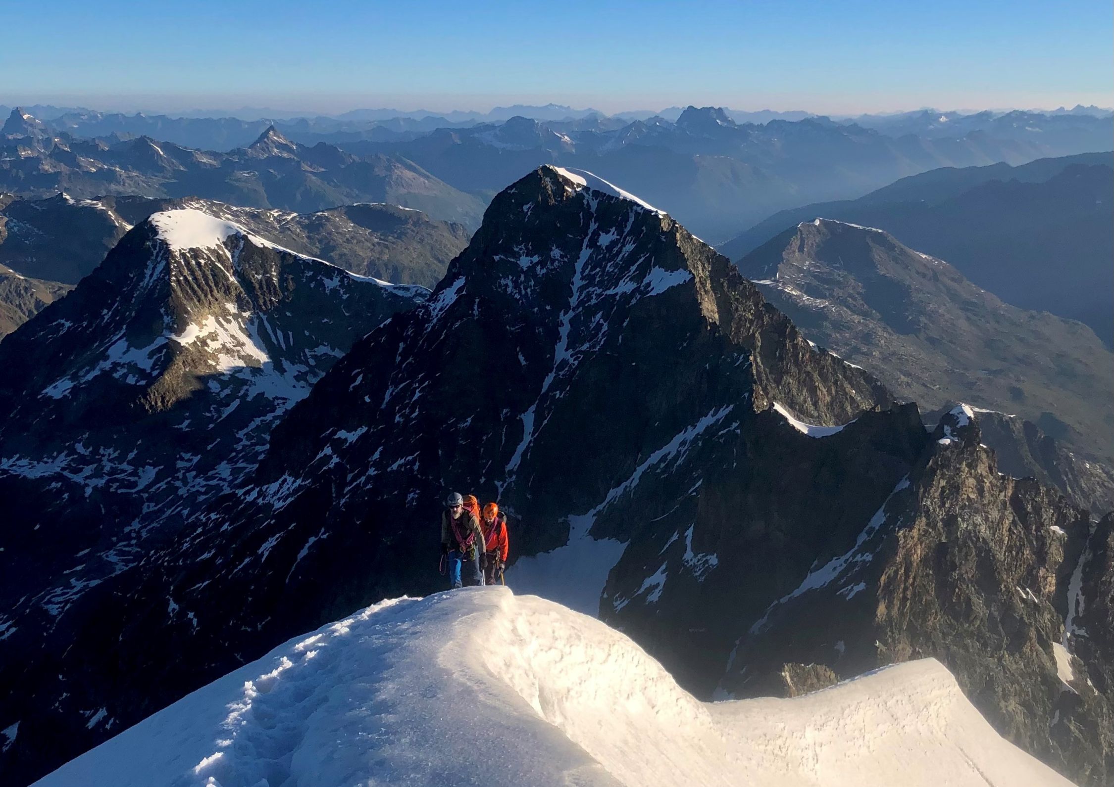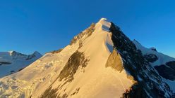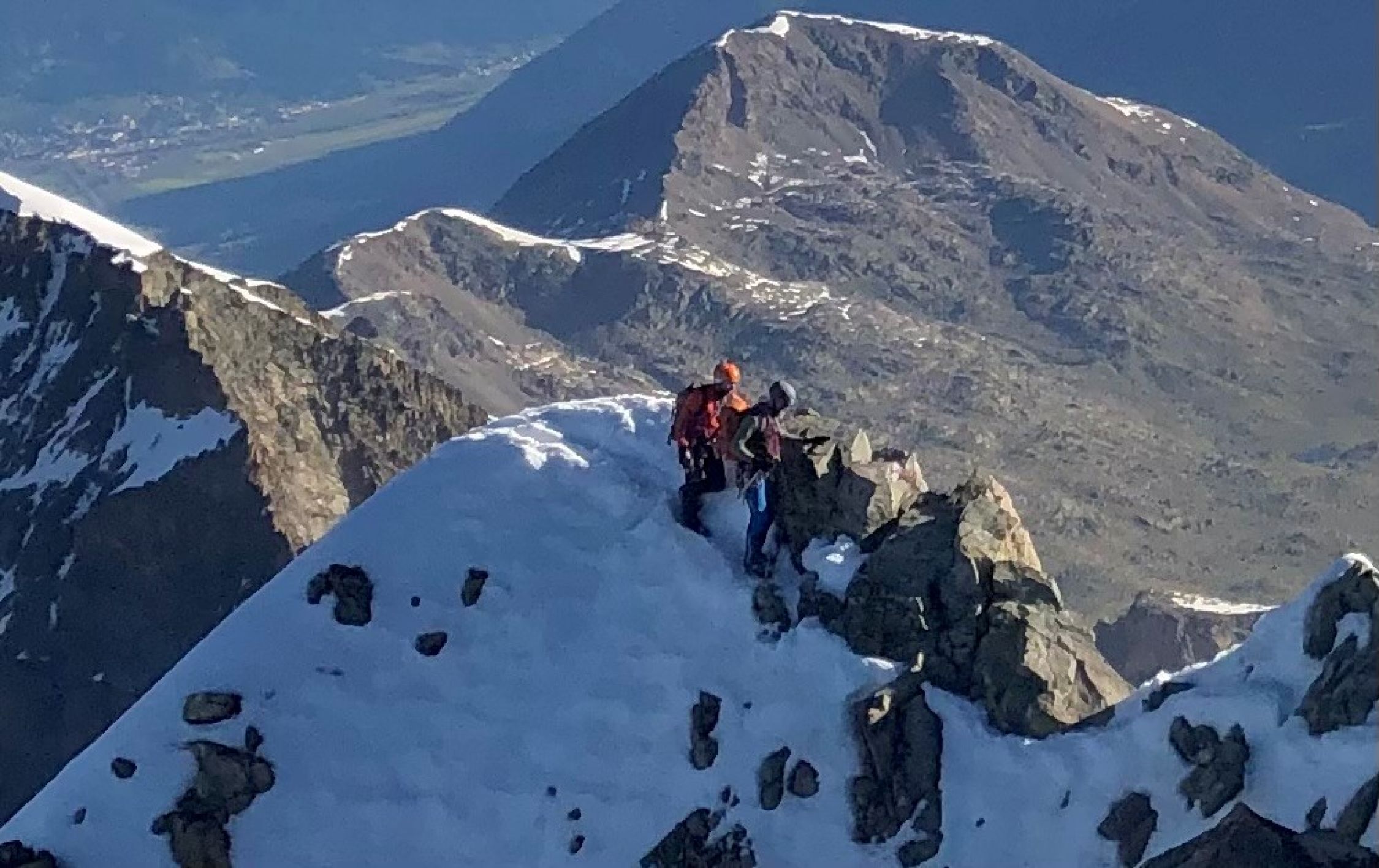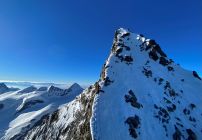 Aktuell herrschen Topverhältnisse am Biancograt. Es wird aber nicht mehr all zu lange so bleiben. Der Firnhang zur Fuorcla Prievlusa geht noch, doch er ist bereits 5Meter unterbrochen und es muss kurz geklettert werden. Über den ersten Aufschwung sind wir geklettert, andere Seilschaften sin diesen östlich umgangen. Die Kletterei lohnt sich aber auf alle Fälle! Die Haifischflosse kann ebenfalls noch gut umgangen werden. Der Schneegrat hat eine schöne Spur drin, teilweise glitzert bereits das blanke Eis durch. Die Verbindung zwischen Piz Alv und Piz Bernina ohne nennenswerte Stellen, alles bestens frei. So auch der Abstieg über den Spallagrat, Perfekt :-).