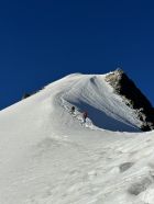 Perfekter trittschnee und hervorragende Spur. Das steilste stuck am Grat alert jedoch bereits aus und wird ohne Niederschlag bald blank sein.