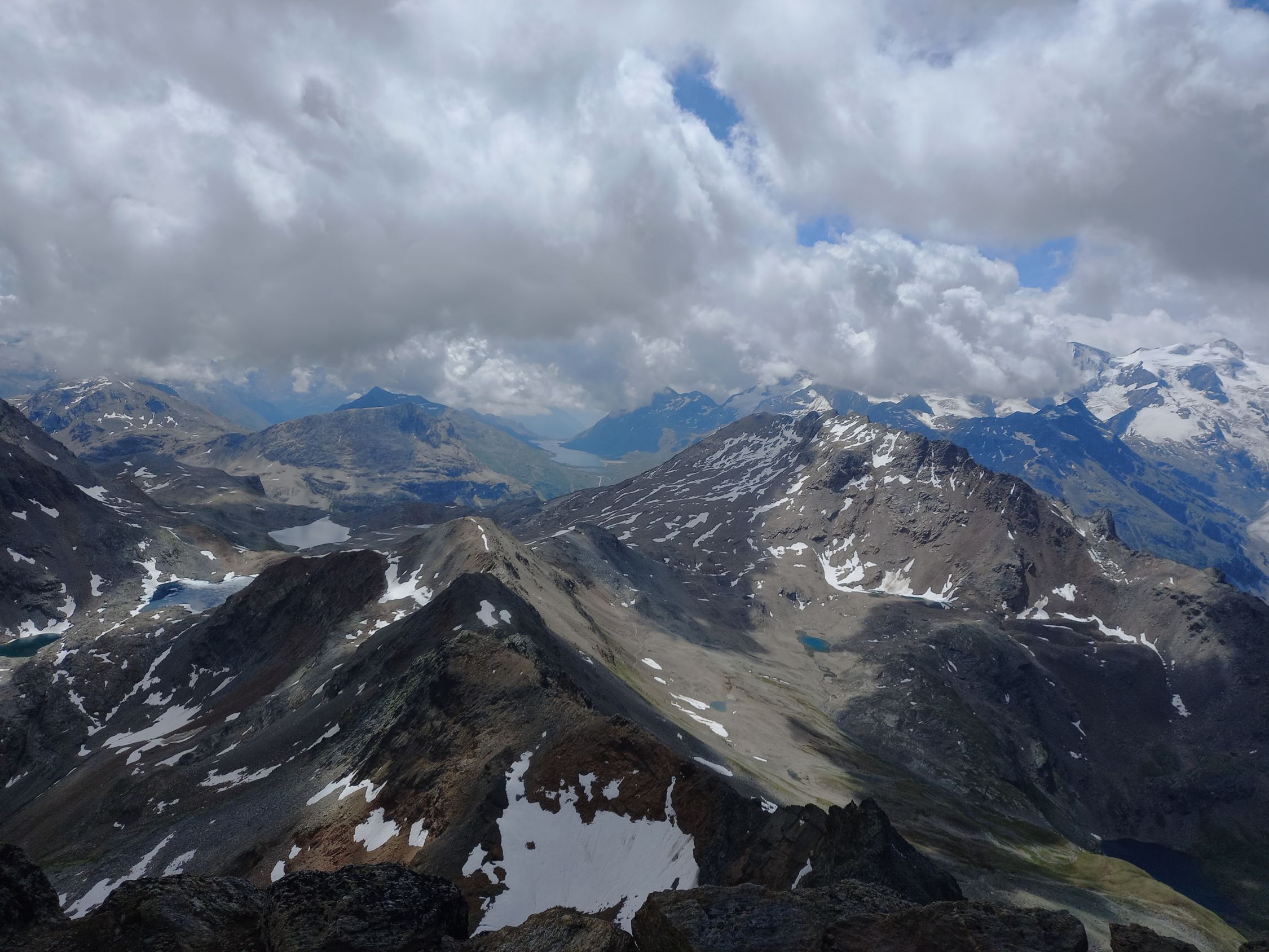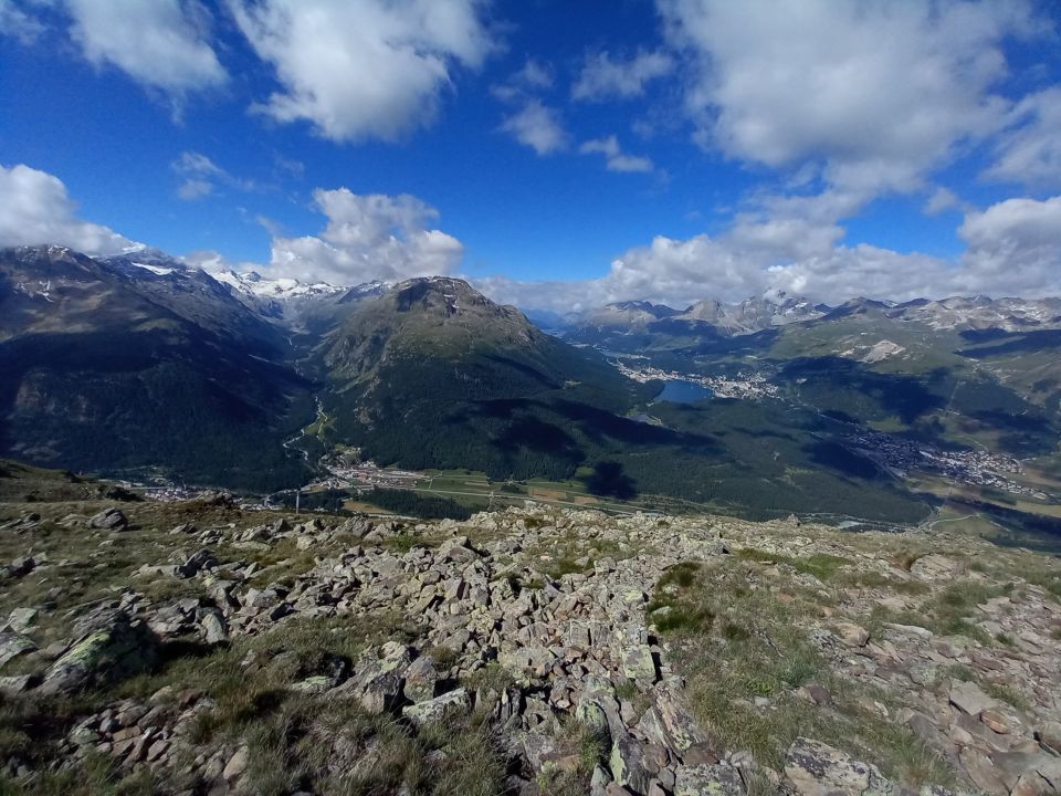 Alles aper, alles trocken. Tolle Ausblicke aufs Bernina Massiv und St. Moritz