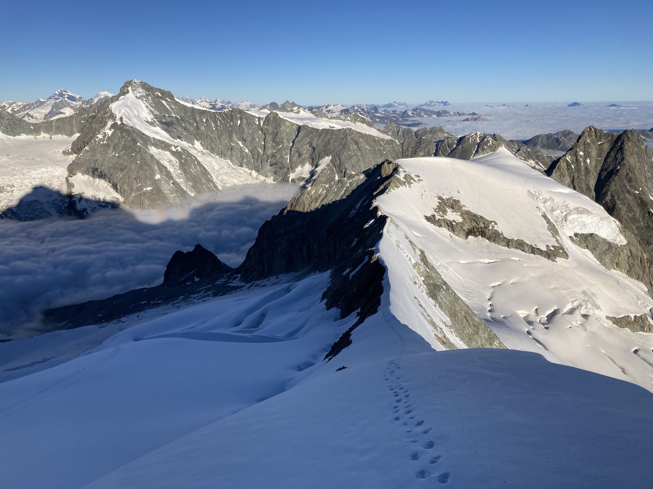 Top Verhältnisse am Nordgrat. Schneegrat bis zur Epaule gut gespurt und nix blank. Am Felsteil am Nordgrat hat es nur wenig Schnee. Die Kletterei an der Bosse geht ohne Schneekontakt. Der Schlussgrat ist auch gut gespurt und geht problemlos. Im Abstieg via Gabel / Eisloch und in der anschliessenden Flanke liegt aber noch relativ viel und nicht sehr verfestigter / tageszeitlich aufgeweichter Schnee, was den Abstieg mühsam macht und Zeit braucht.