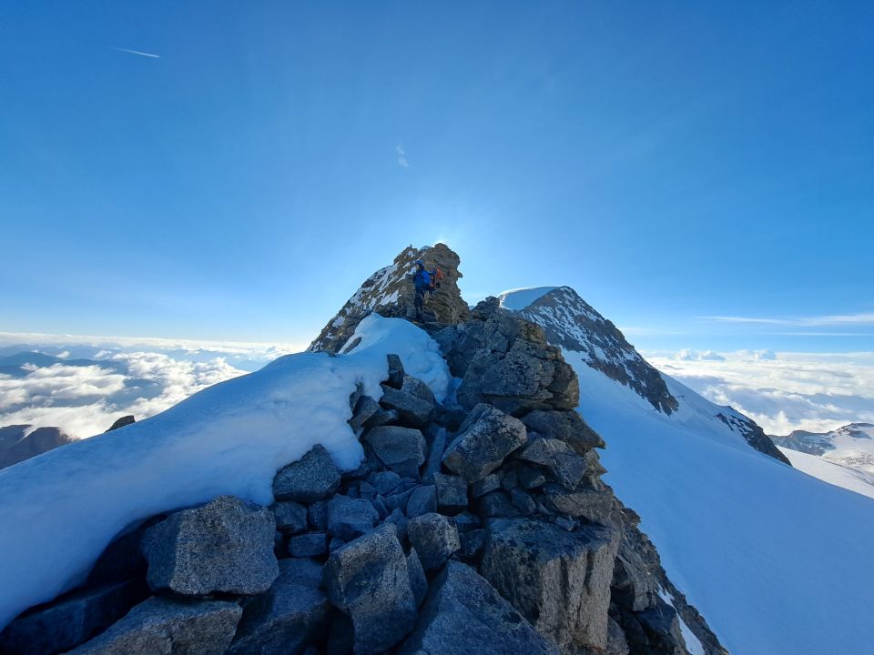 Spinas-Grat weitestgehend schneefrei und perfekt zu klettern.