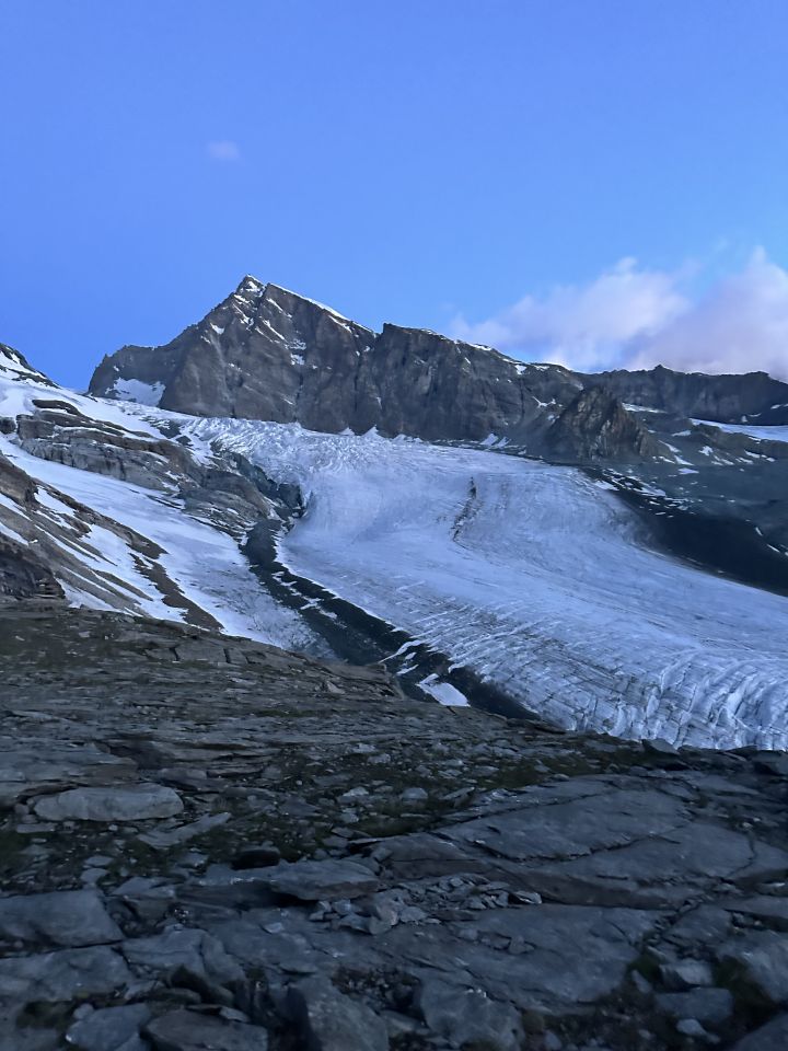 Perfekt, besser wird’s nicht. Top Spur, Fels trocken. Allein am Gipfel. Wir sind am Mattmarkstausee gestartet um 04:00. 09:00 Kaffee am mittelallalin