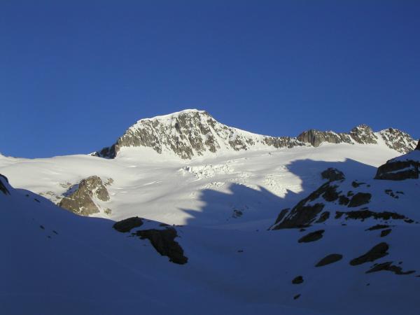 Aufstieg ab Hotel Tiefenbach. Ab: 05:15, Gipfel an bei besten Verhältnissen um 10:00. Aufstieg über Tiefengletscher, der Grossteil der Tourengänger direkt Richtung Ob. Bielenlücke (Spalten?).