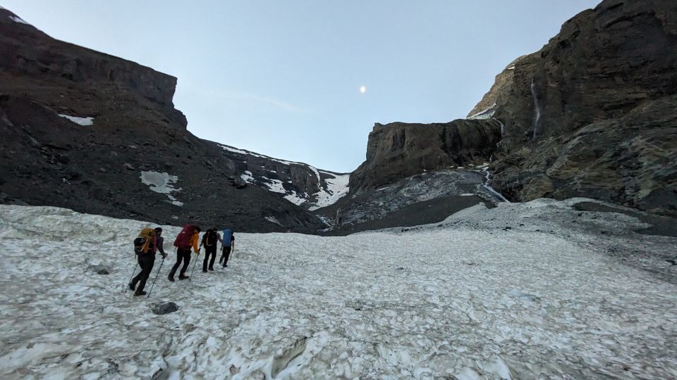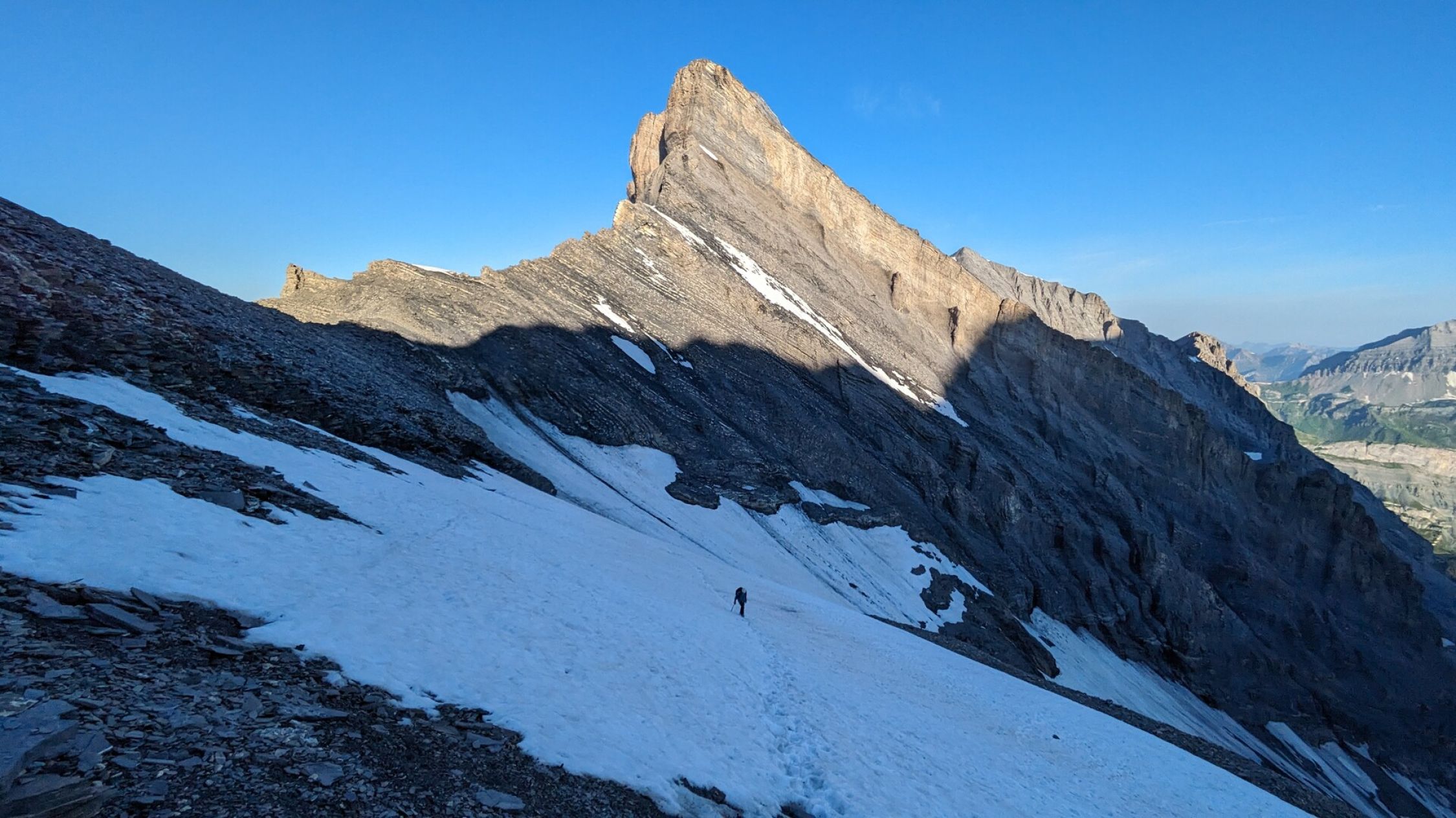 Wir warem an Anfang recht zügig unterwegs (Abmarsch kurz nach 4 Uhr) und wurden dann ab dem Grat eher langsam, was aber sicher auch dem schweren Gepäck geschuldet war (wir hatten alle Gleitschirme dabei).