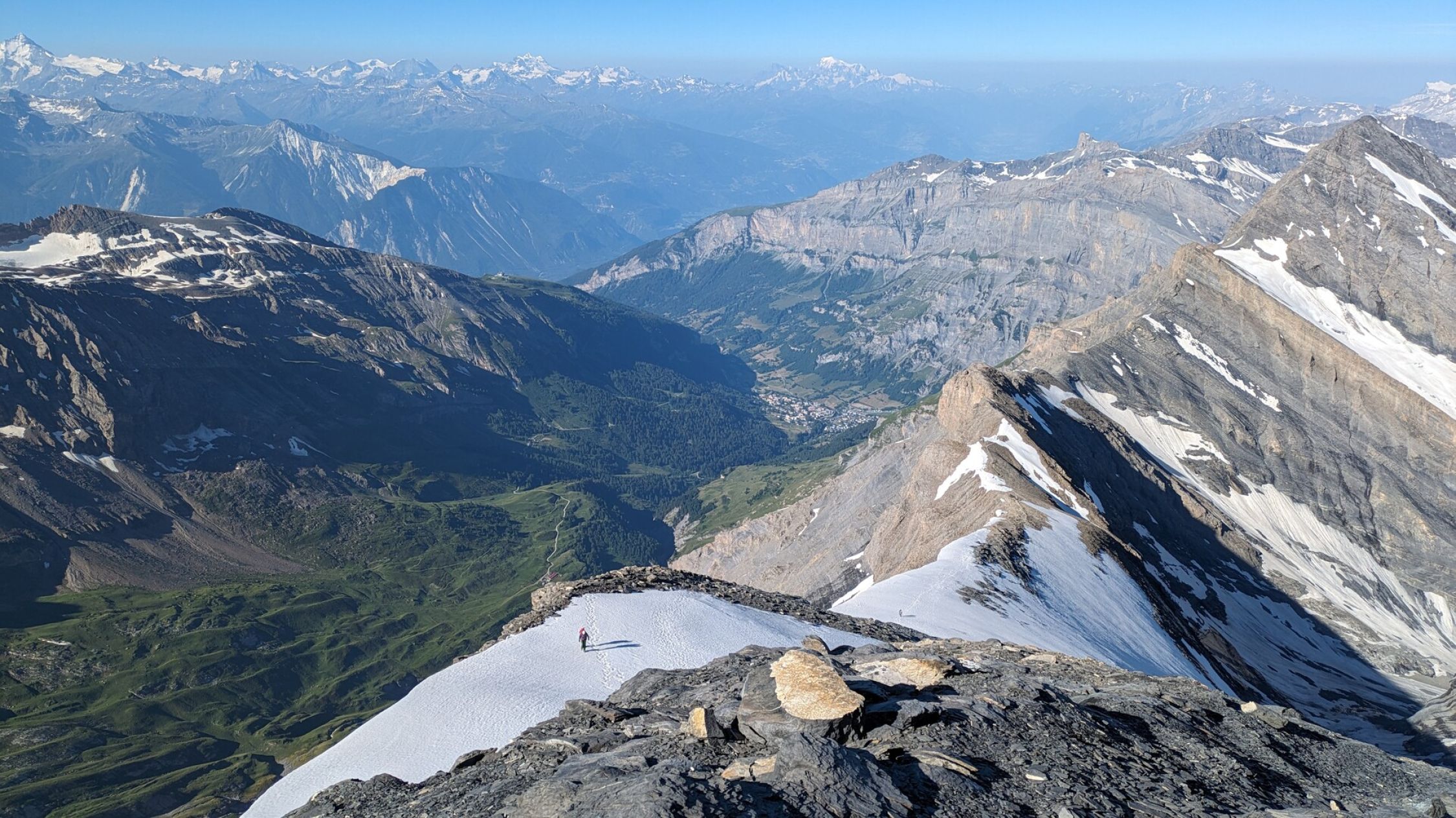 Nach 5.5 Stunden (um 09:30) waren wir auf dem Gipfel und konnten dann auch tatsächlich starten (mit Landungen zwischen Kandersteg und Interlaken).