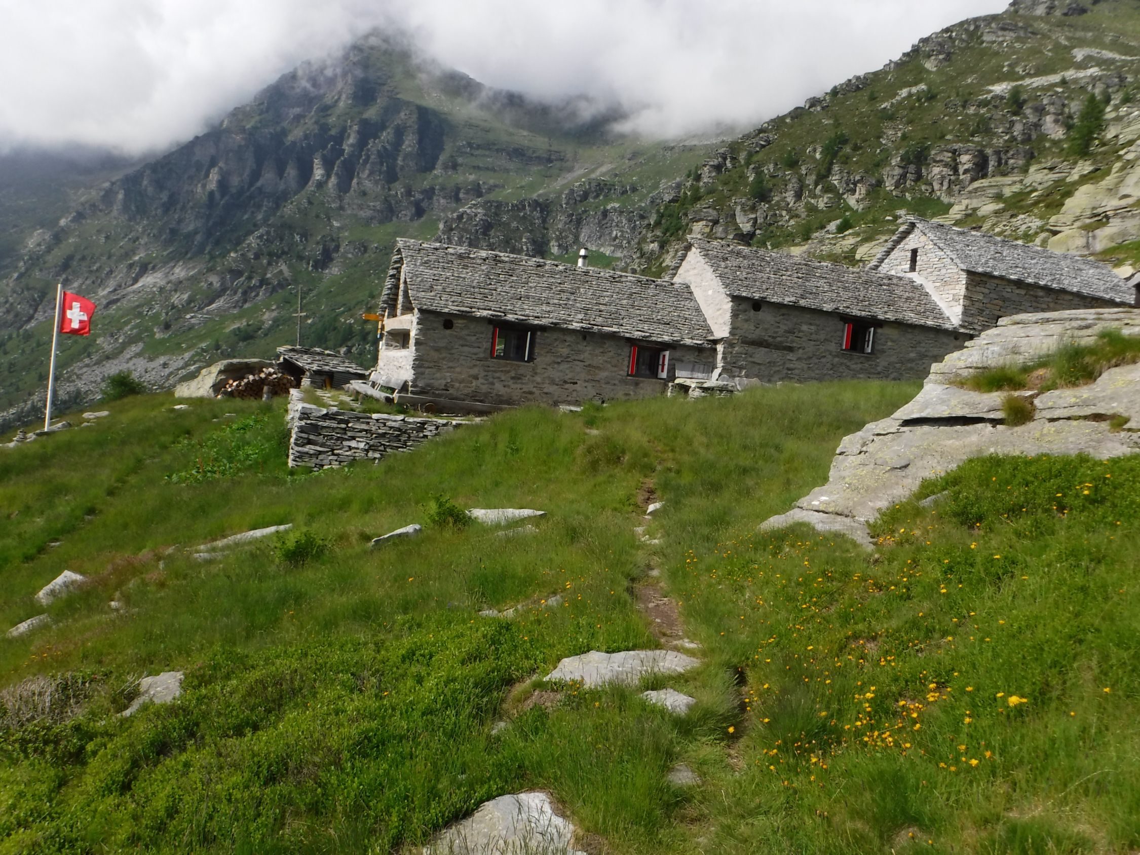 Die Schutzhütte bei der Alpe Fümegna sieht verlassen aus. Beim früheren Rifugio wehte auch keine Schweizer Fahne. Anscheinend wurde sie nun aufgegeben.