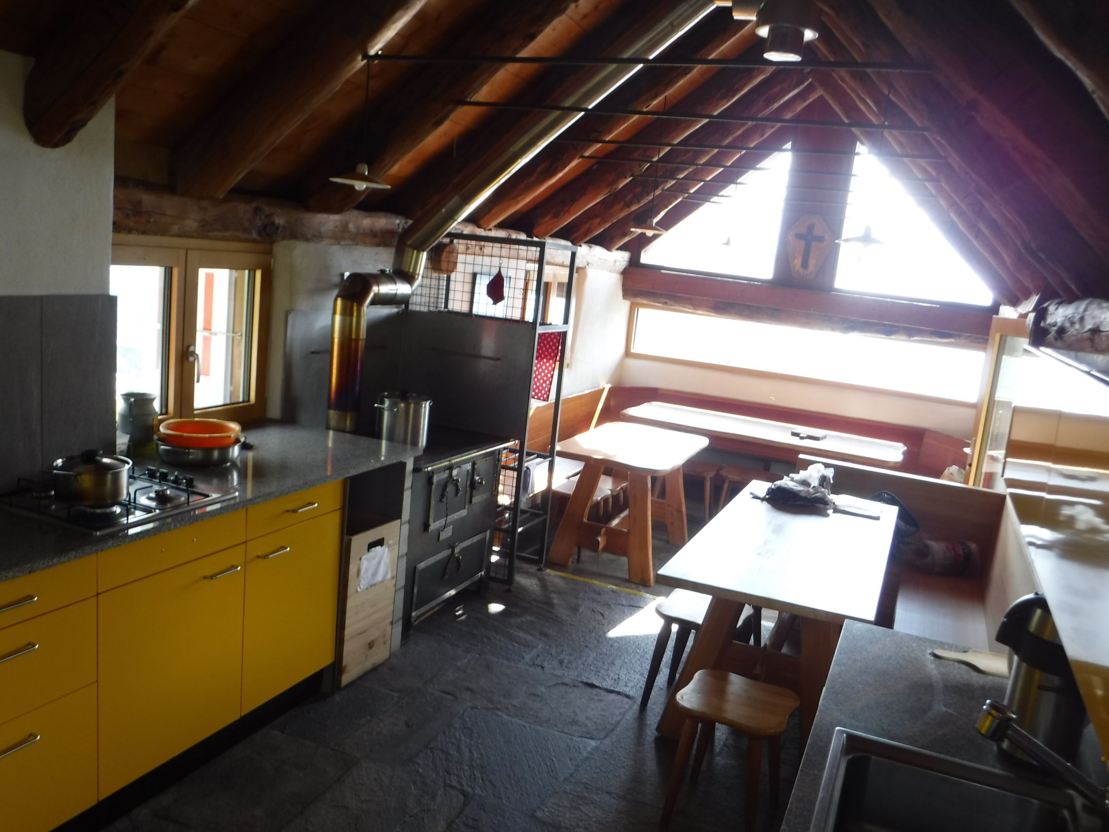 Wir beide waren die einzigen hier auf der Capanna d’Efra. Seit meinem letzten Besuch hier am 17.5.2012 (https://www.gipfelbuch.ch/verhaeltnisse/54995-wanderung-basal-2588-m-2588m) wurde der Innenraum komplett neu restauriert.