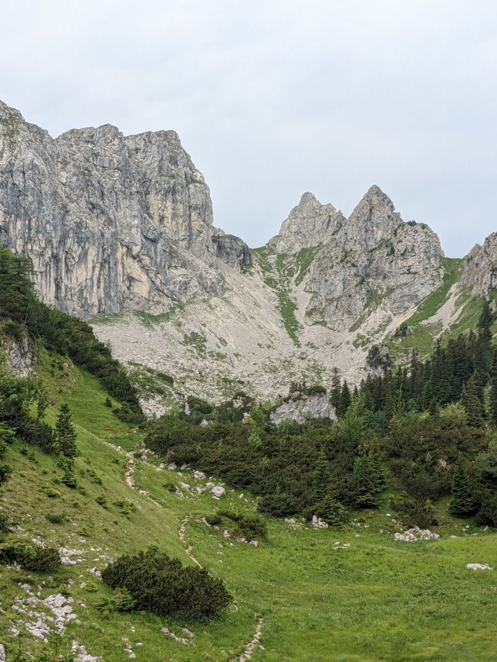 Früh gestartet. Bis zum Fensterl bedeckt und mit einigen Regentropfen. Dann zunehmend besser. Im Abstieg wieder sehr warm.
