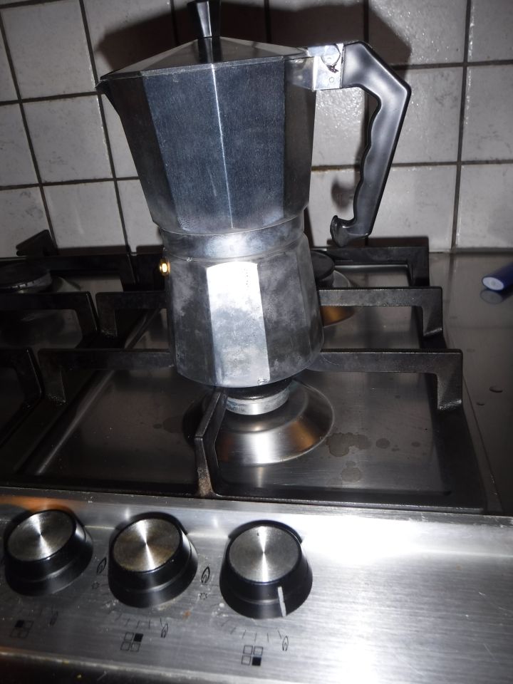 Die Sache mit der „Tessiner Kaffemaschine“. Konnte ich heute für mich klären. Bei meinen vielen Touren in den vergangenen Jahren im Tessin oder Nordpiemont begegnete ich auf Hütten, oder in Bivaccos immer wieder diesem achteckigen Espresso-Kocher. Zwar ahnte ich, wie der funktionieren könnte. Hatte aber diesen nie ausprobiert, oder mich bisher nicht mit seiner Funktionsweise beschäftigt. Darum war ich dankbar der netten Bündnerin, welche über die Via Alta Vallemaggia hierherkam, als sie mir am Vorabend das Ding erklärte. Schließlich gab es gemahlenen Kaffee im Schrank bei der Kochecke der Hütte. Am heutigen Morgen habe ich dann tatsächlich das Gerät ausprobiert und ich war begeistert. Der Kaffee wird in das einsteckbare runde Alu-Sieb eingelegt. Das Sieb dann auf unteren Topf gesteckt, welcher zuvor mit Wasser aufgefüllt wurde bis knapp unterhalb des winzigen Auslass-Ventils aus Messing. Dann wird das Oberteil mit dem Unterteil verschraubt. Das gesamte Teil stellt man dann auf eine Hitzequelle (Propan-Kocher, Holzofenplatte, oder was auch immer). Wenn das Wasser im Unterteil zu kochen beginnt, dehnt es sich aus, verdampft und gelangt durch das Sieb ins Oberteil, wo dann der Kaffee sich sammelt aus dem anschließend überlaufenden Wasser. Genial, wer sich das ausgedacht hat. Funktioniert immer noch: ohne Strom, ohne irgendeine App. Das verstehe ich unter Nachhaltigkeit. Nach 5 min. war mein Kaffee auf Capanna Barone fertig. Bellissimo !