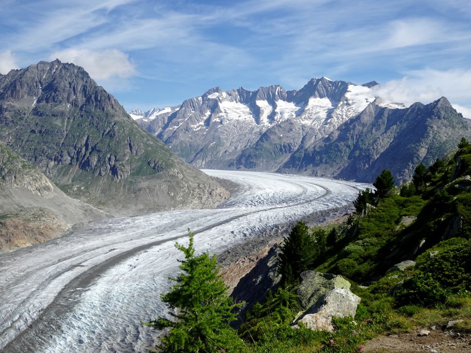Vor zwei Wochen bin ich von der Moosfluh zur Riederfurka gewandert, heute wollte ich die obere Hälfte des Aletschrücken im Abstieg. begehen.Der Weg zwischen Bettmergrat Station und Moosfluh ist , gelinde gesagt ziemlich "knieplagend". Von der Moosfluh nach Riederfurka - Riederalp hingegen ist es angenehm. Die grosse Hitze hat mir zudem überzeugt die Gondelbahn nach der Riederalp zu nehmen,. Was ich, zur Freude meiner Knien ohne Gewissensbissen gemacht habe.. Hat man genug, kann man auch mal "tricksen" (Seniorenbunus)