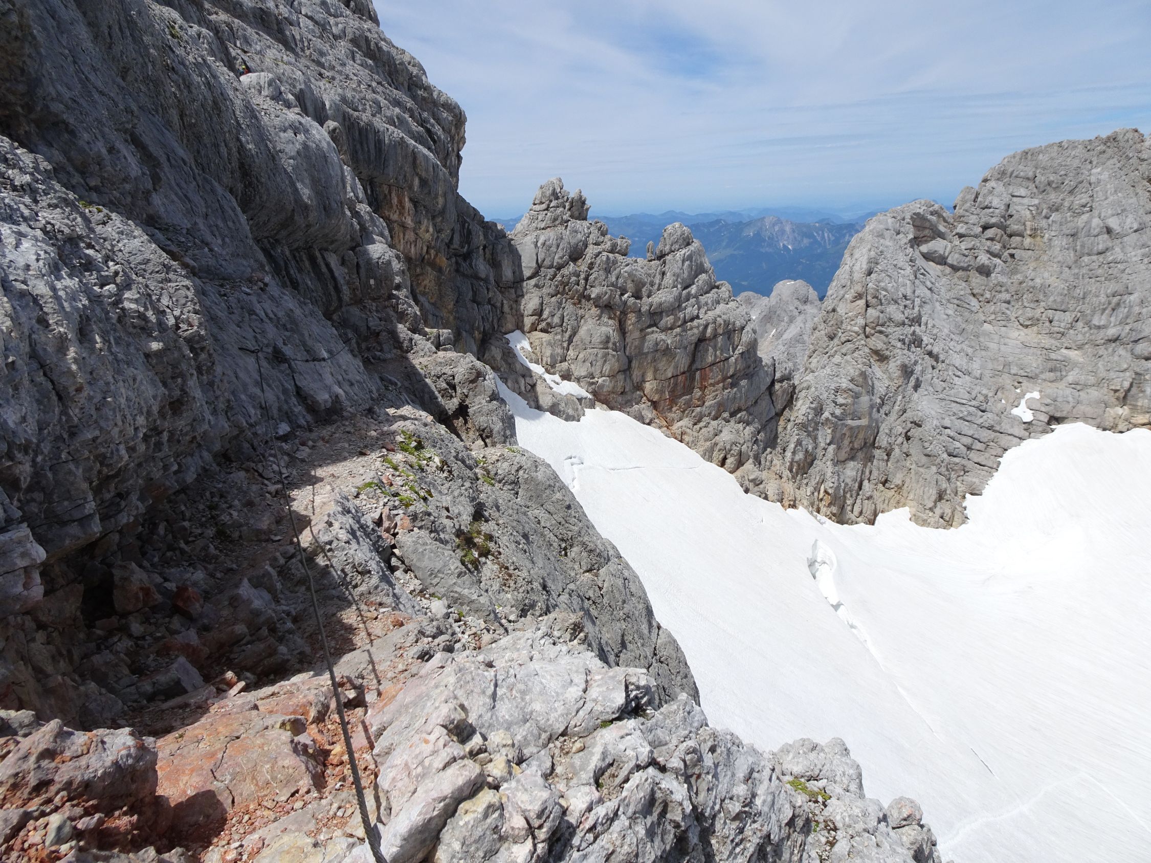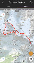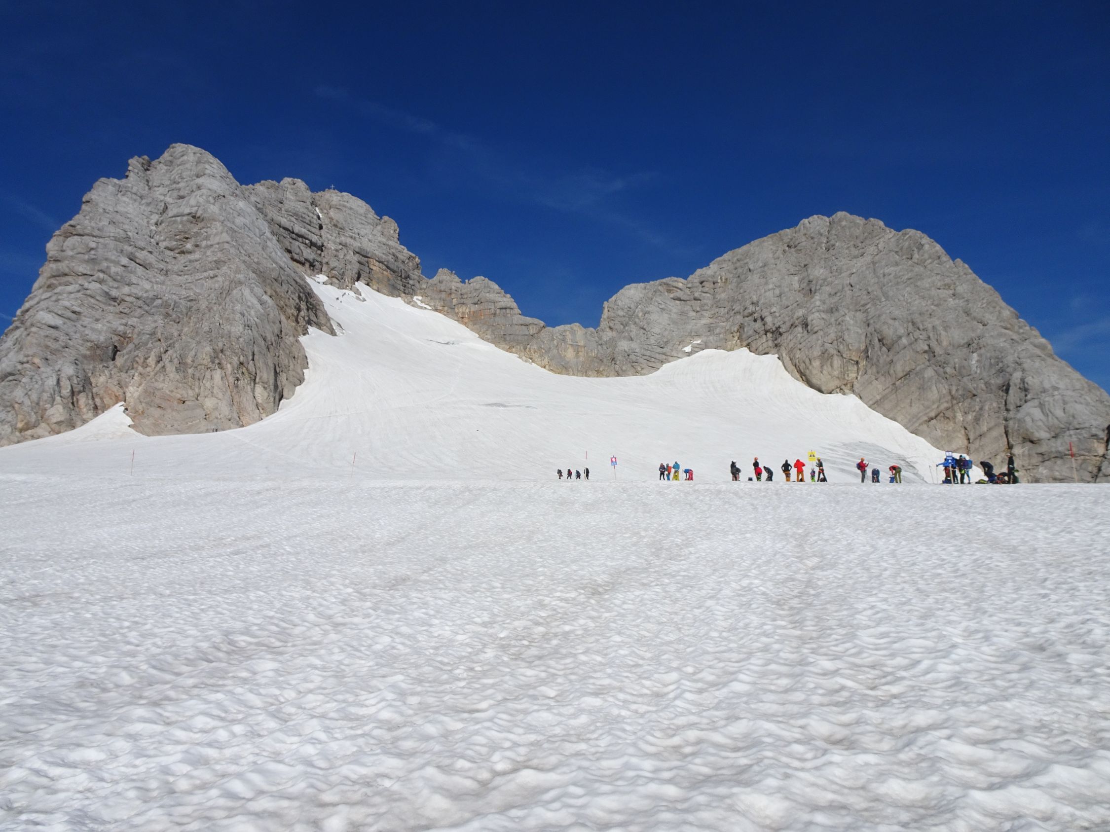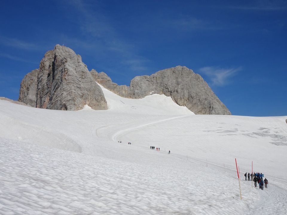 Ich bin folgende Route gegangen: Hunerkogel - Steinerscharte - Obere Windluke - Westgrat - Hoher Dachstein - Randkluftsteig - Mecklenburgerband - Schulteransteig - Seethalerhütte - Hunerkogel