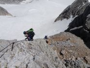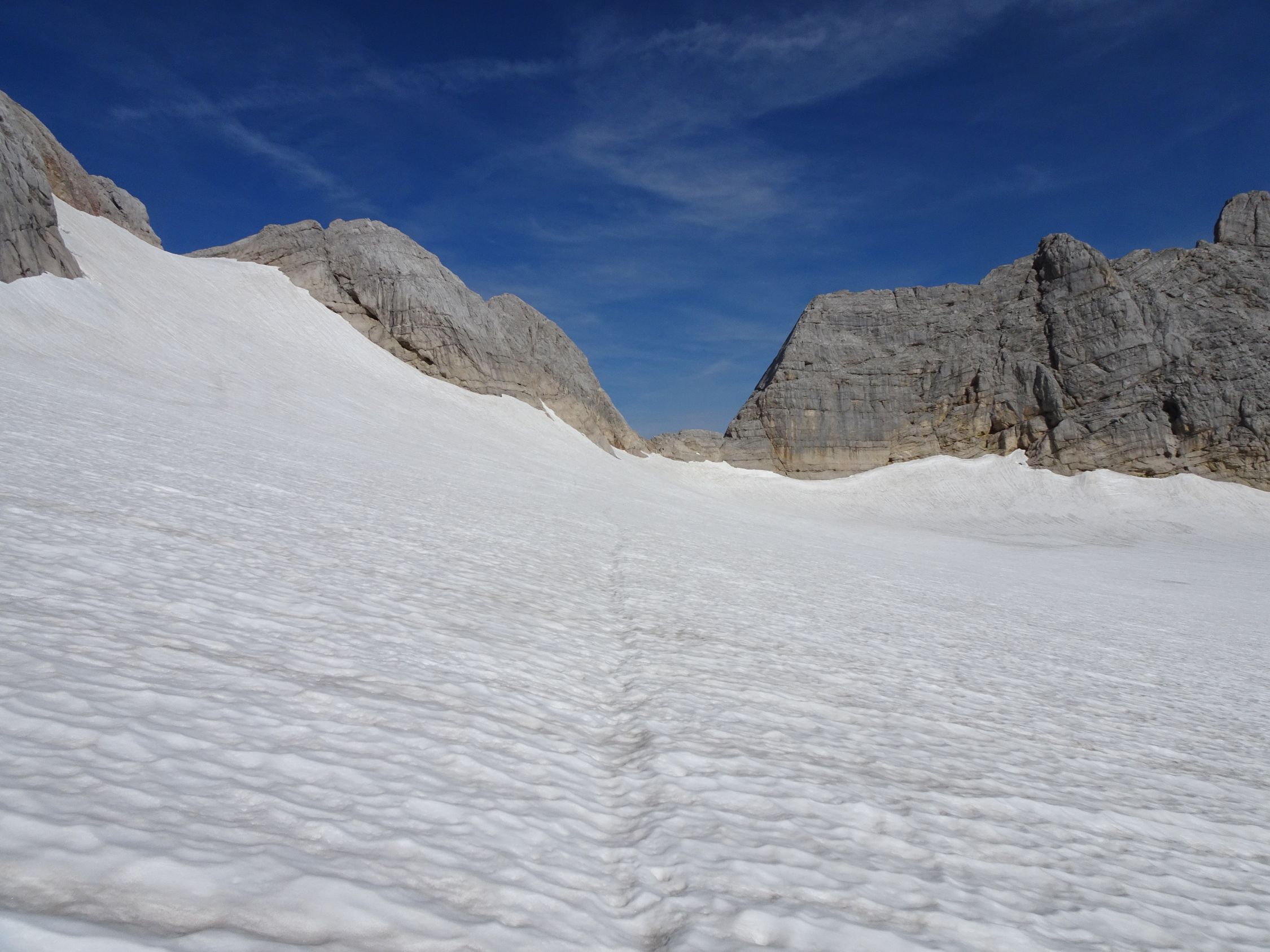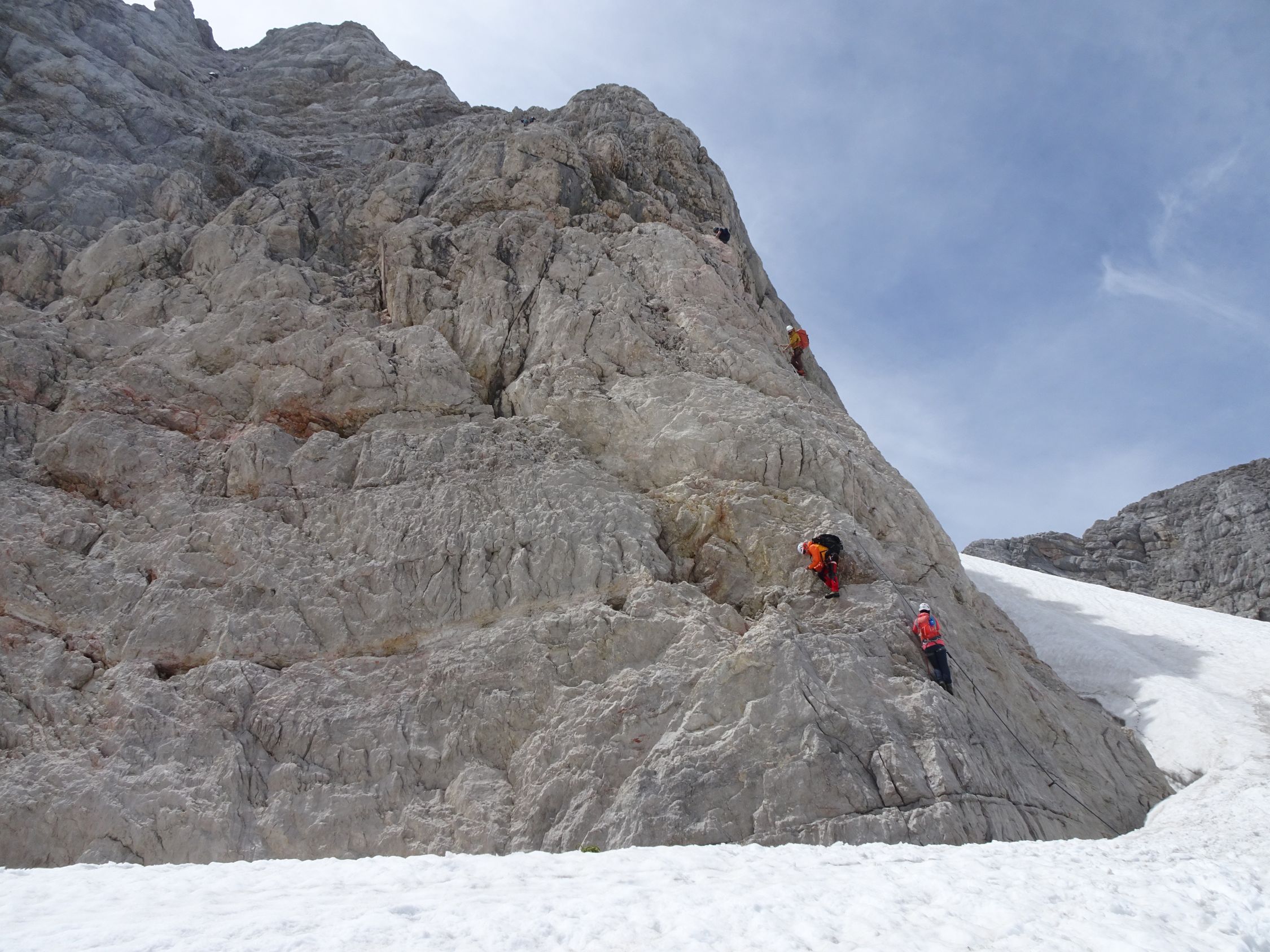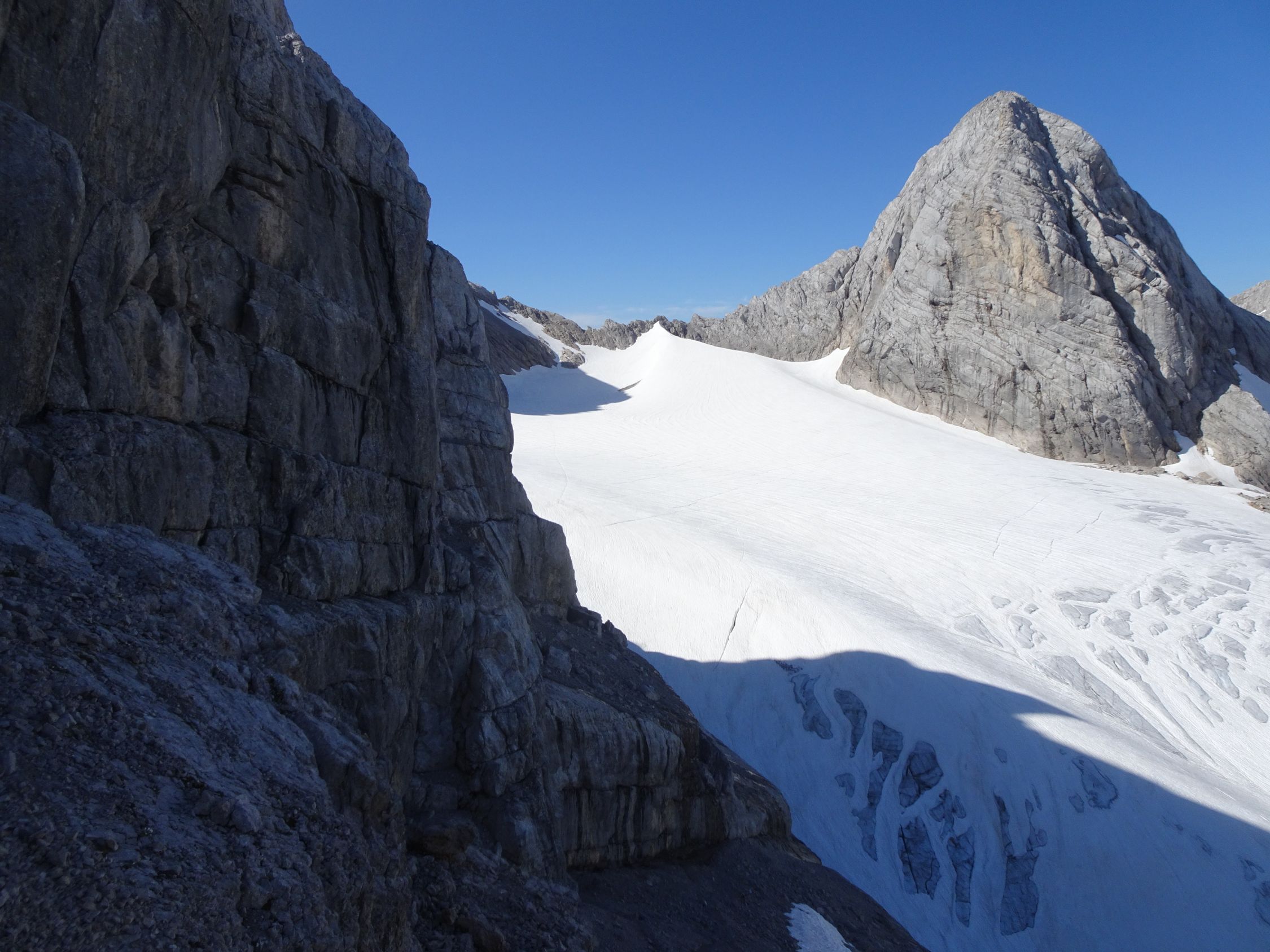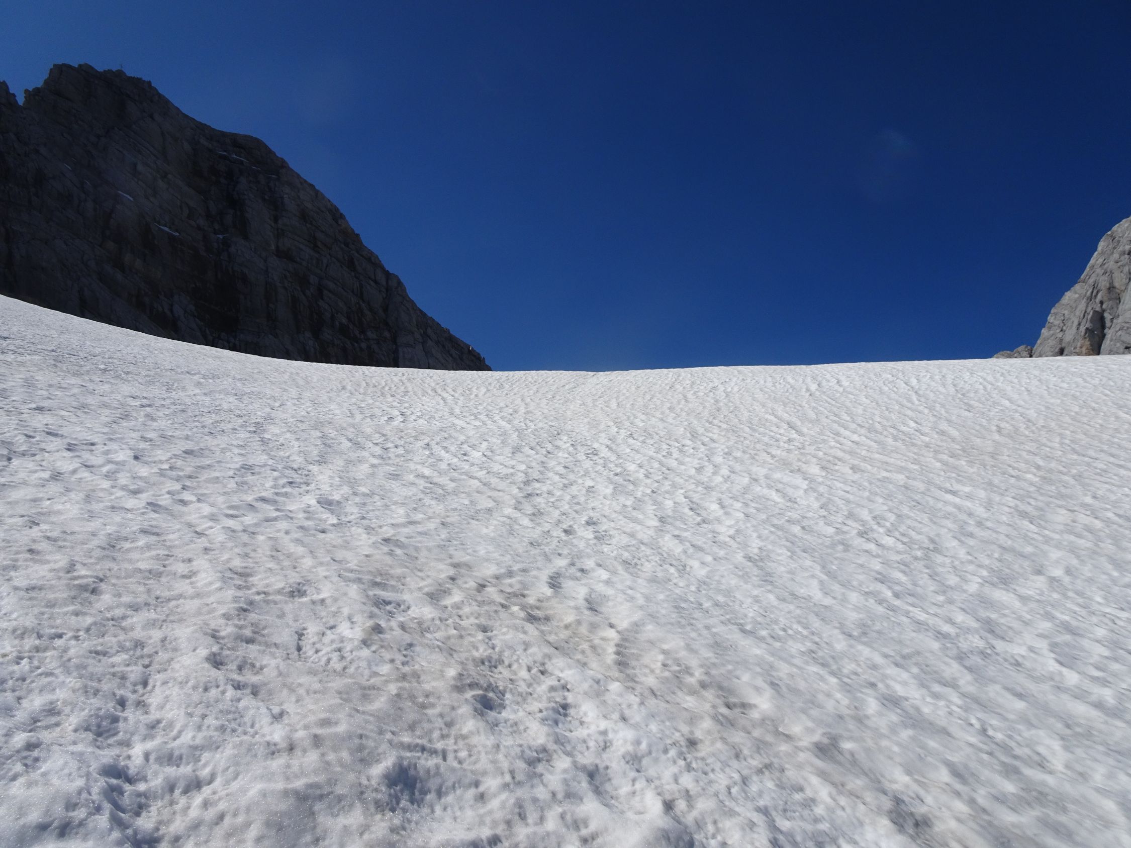 Beste Bedingungen, Gletscher gut eingedeckt, nur die grossen Spalten offen und gut sichtbar, Fels trocken, kein Schnee in den Klettersteigen bzw. nur zwei ganz kleine Stellen je ca.2-3m, Randkluft auch noch sehr gut