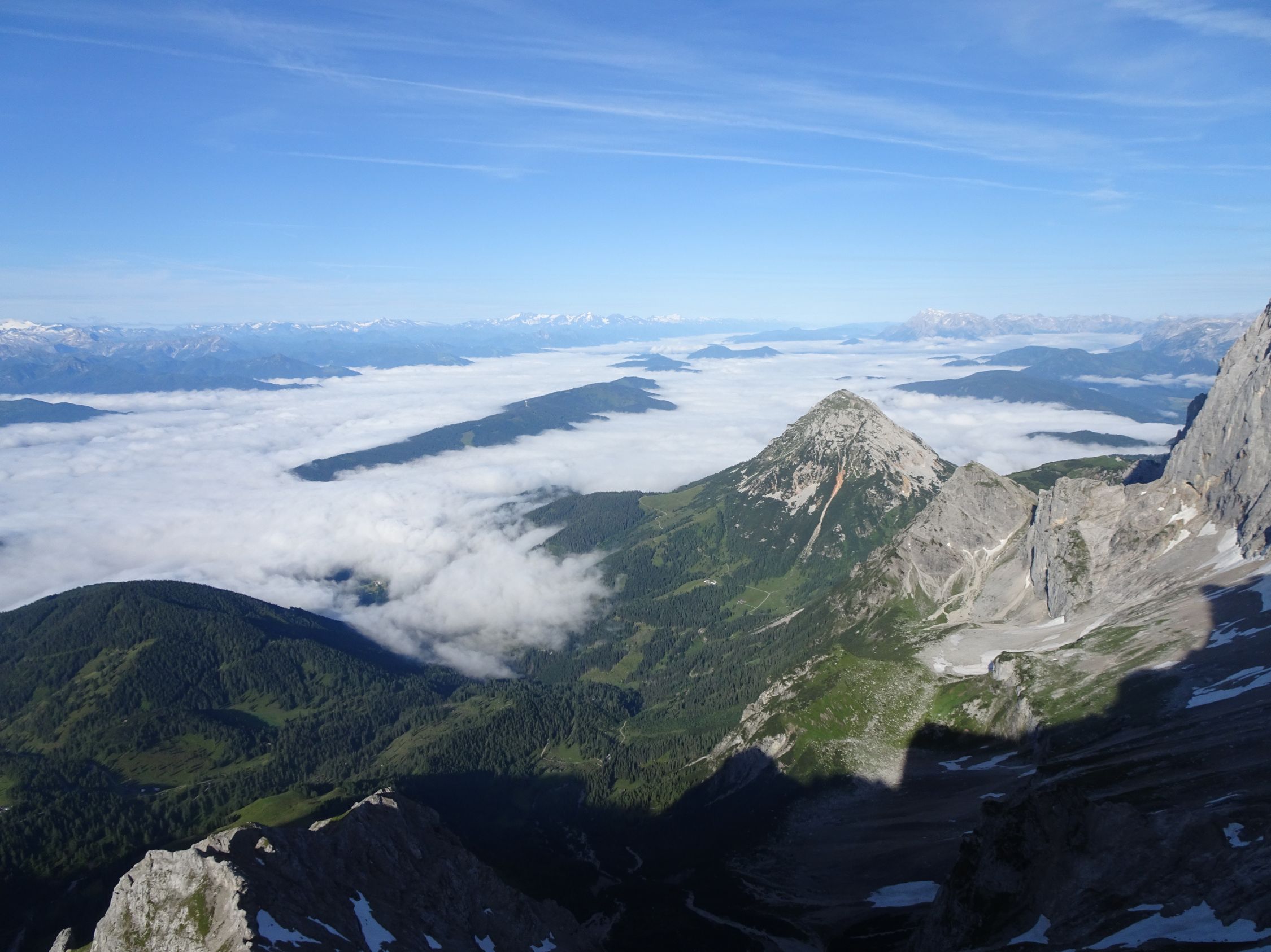 Eine wunderbare Kombitour(Motorrad/Klettersteig) auf den höchsten Berg der Steiermark. Mit dem Wetter hatte ich ebenfalls Glück. Am Tag zuvor bei der Anreise regnete es sehr stark und das ganze Dachsteinmassiv konnte man im Nebel nur erahnen.
