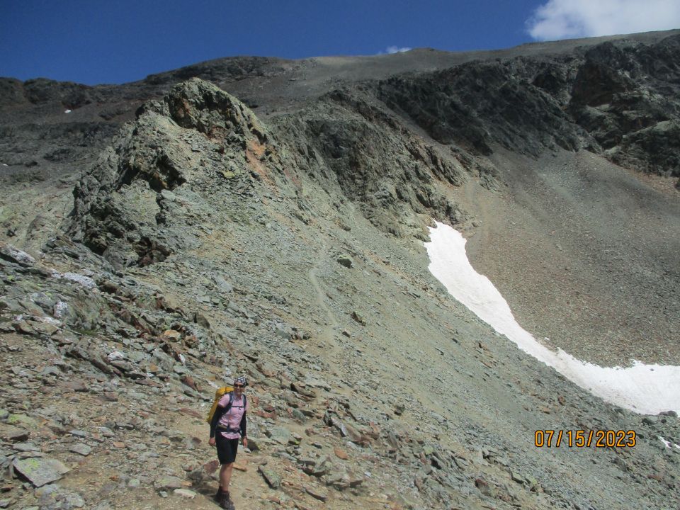 Nach der Rückkehr vom Gipfel der Tschima da Flix haben wir noch dem benachbarten Piz d´Agnel einen Besuch abgestattet. Hier lässt sich lehrbuchhaft der Beginn eines Felssturzes beäugen, siehe Verhältnisfotos.