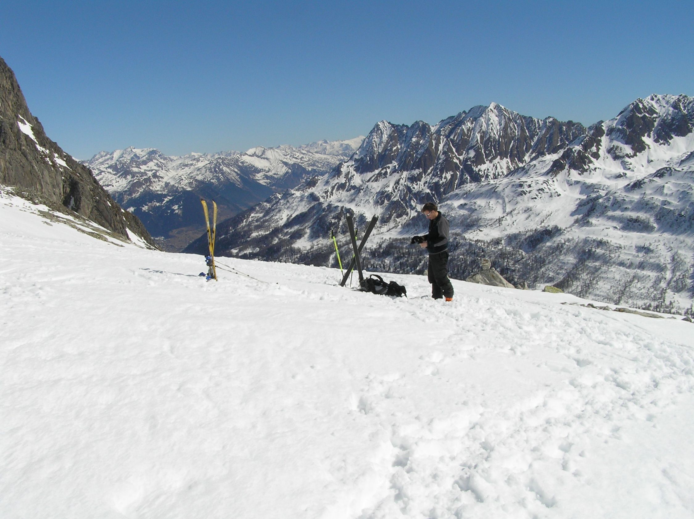 Von All Acqua durchs Ri dell Acqua zur Pianseco Hütte von da zu den felsdurchsetzten Ausläufern des Chüebodenhorns, knapp unter den Felsen nach rechts traversiert. Weiter steil zum Passo di Rotondo hinauf. Unter dem Couloir zum Pizzo Rotondo Skidepot eingerichtet. Der Schnee im Couloir war gefroren aber mit Steigeisen kein Problem. Im letzte Stück zum Gipfel noch eine leichte Kletterei. Das Gipfelpanorama ist atemberaubend schön! Abstieg zum Depot ab da herrlicher Sulzschnee al dente!. Leider wurde der weicher werdende Schnee zu meinem Verhängnis, Sturz und meine Schulter war ausgekugelt. Die Kollegen versuchten mit allerlei Techniken die Schulter einzurenken leider erfolglos. Der Heli wurde alarmiert aber auch dem Arzt gelang es nicht die Schulter wieder zu platzieren. Die Tour endete für mich im Spital Altdorf wo das Malheur unter Narkose behoben wurde.! An dieser Stelle ganz herzlichen dank an das Regateam und an meine Kollegen!