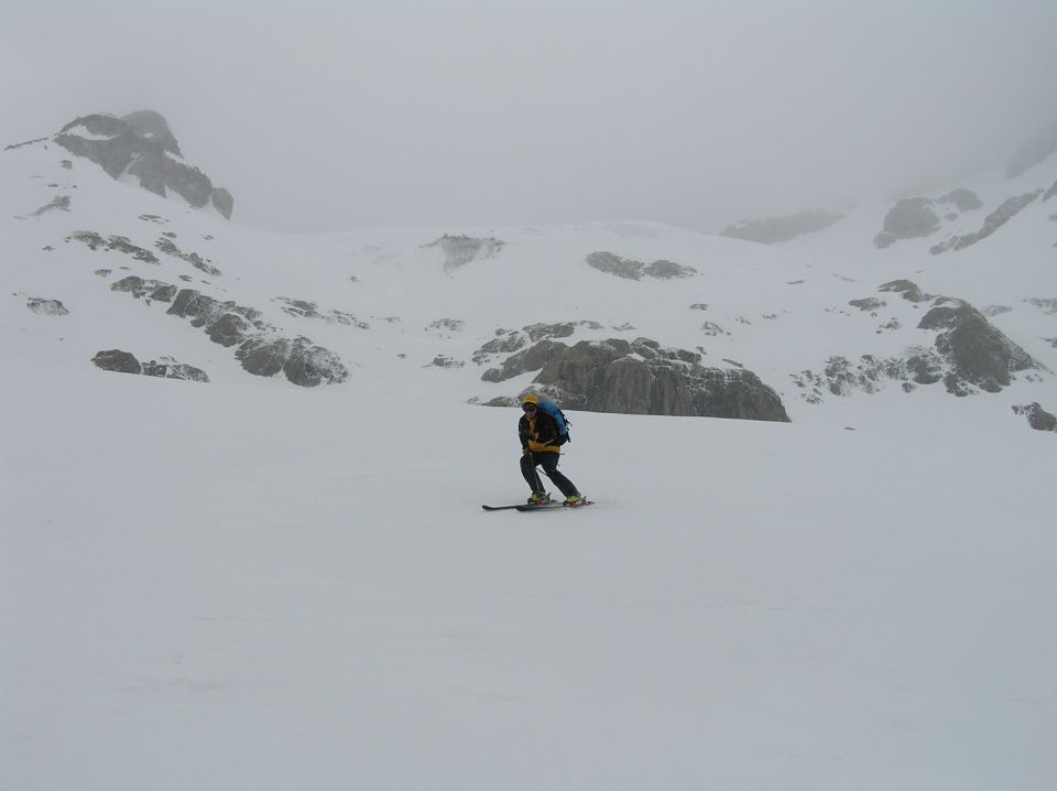 war der Schnee gefroren und tragfähig. Der starke Wind bläst Wolken weg und gab manchmal die Sicht frei. Doch später wurde das Wetter miserabel, deshalb fellten wir unter dem Wintertürmli (Spannort Falkentürme) ab und fuhren fast blind zur Chlialp zurück.