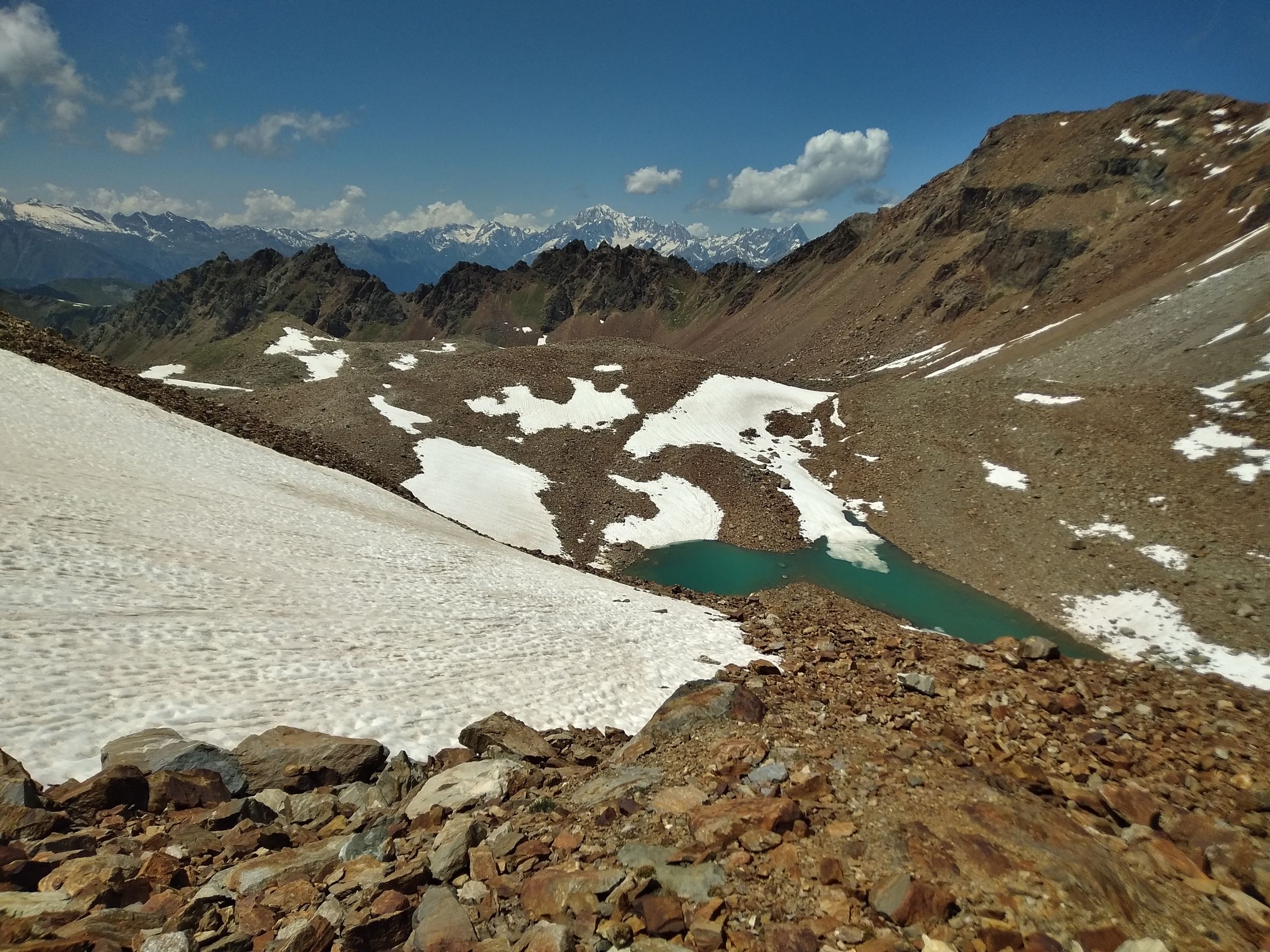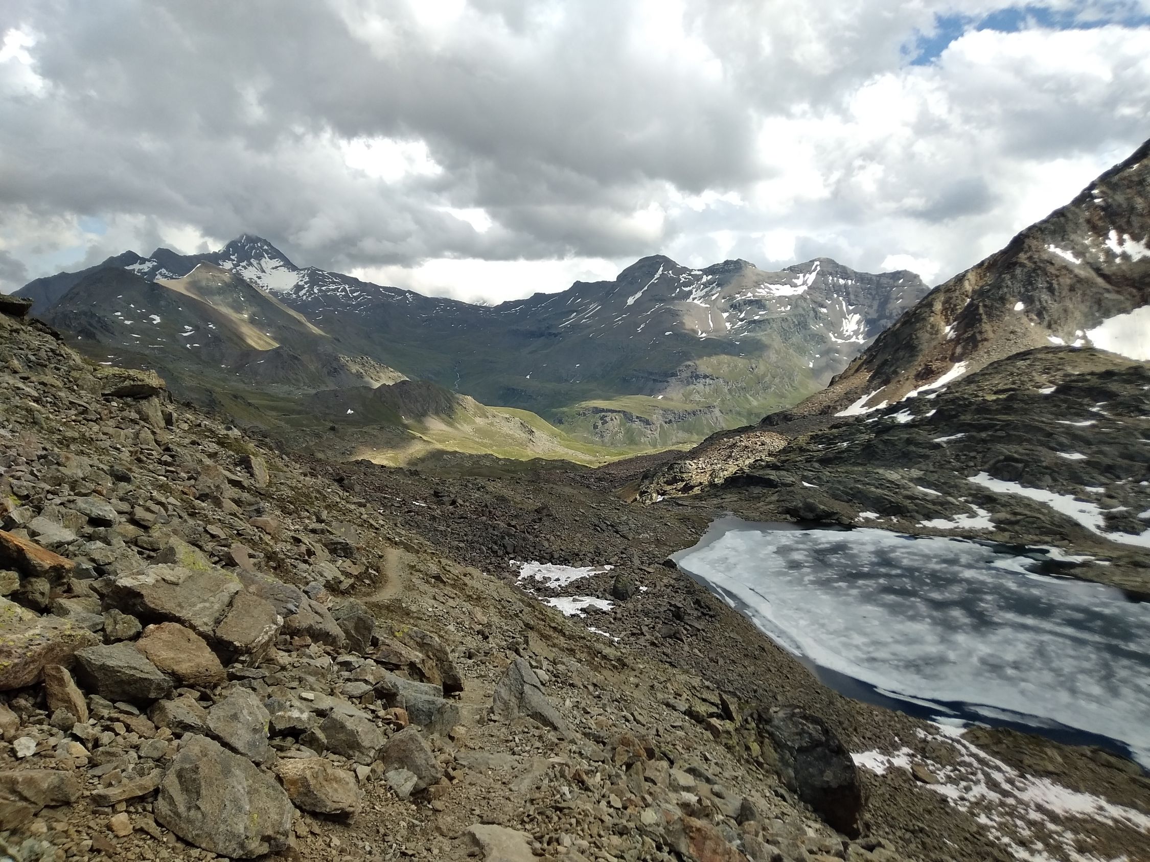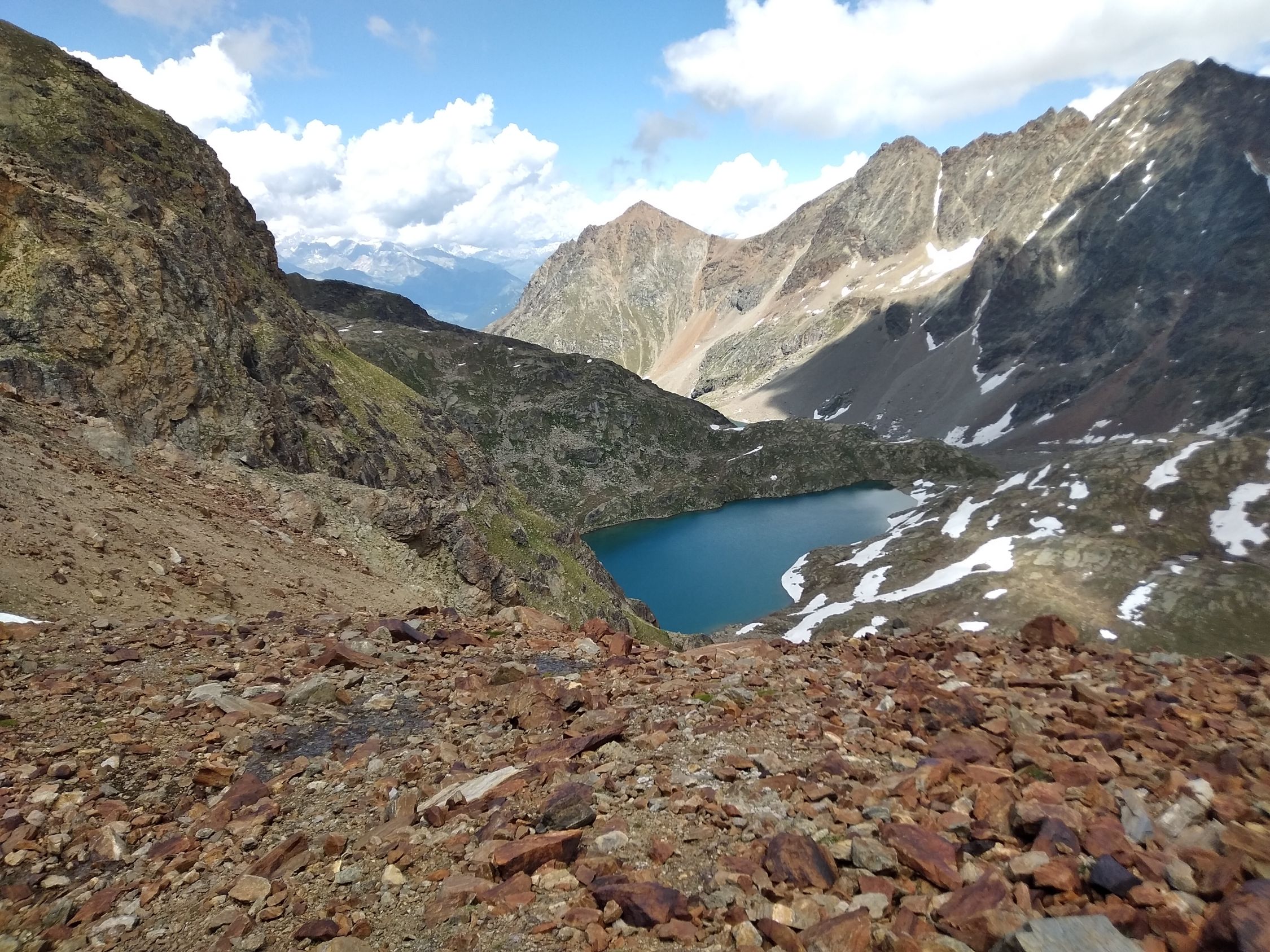 Wir sind im Rahmen einer viertägigen Hüttentour über den Colle d'Arbolle und den Col des Laures zur nigelnagelneuen Grauson - Hütte abgestiegen. Witzig sind die Seen auf insgesamt drei Geländestufen.