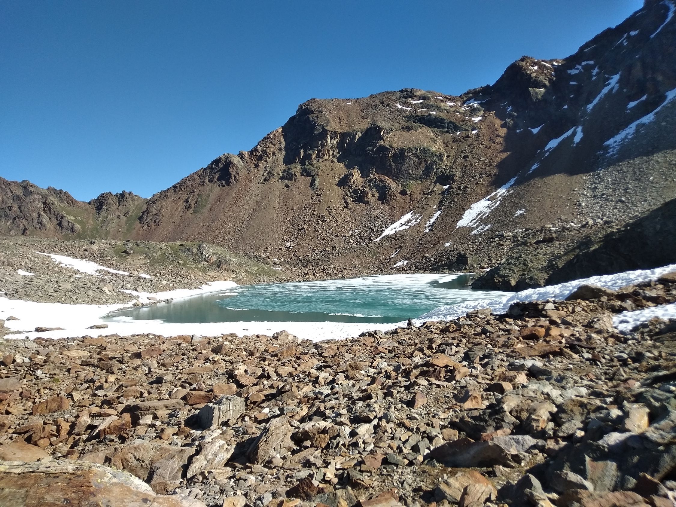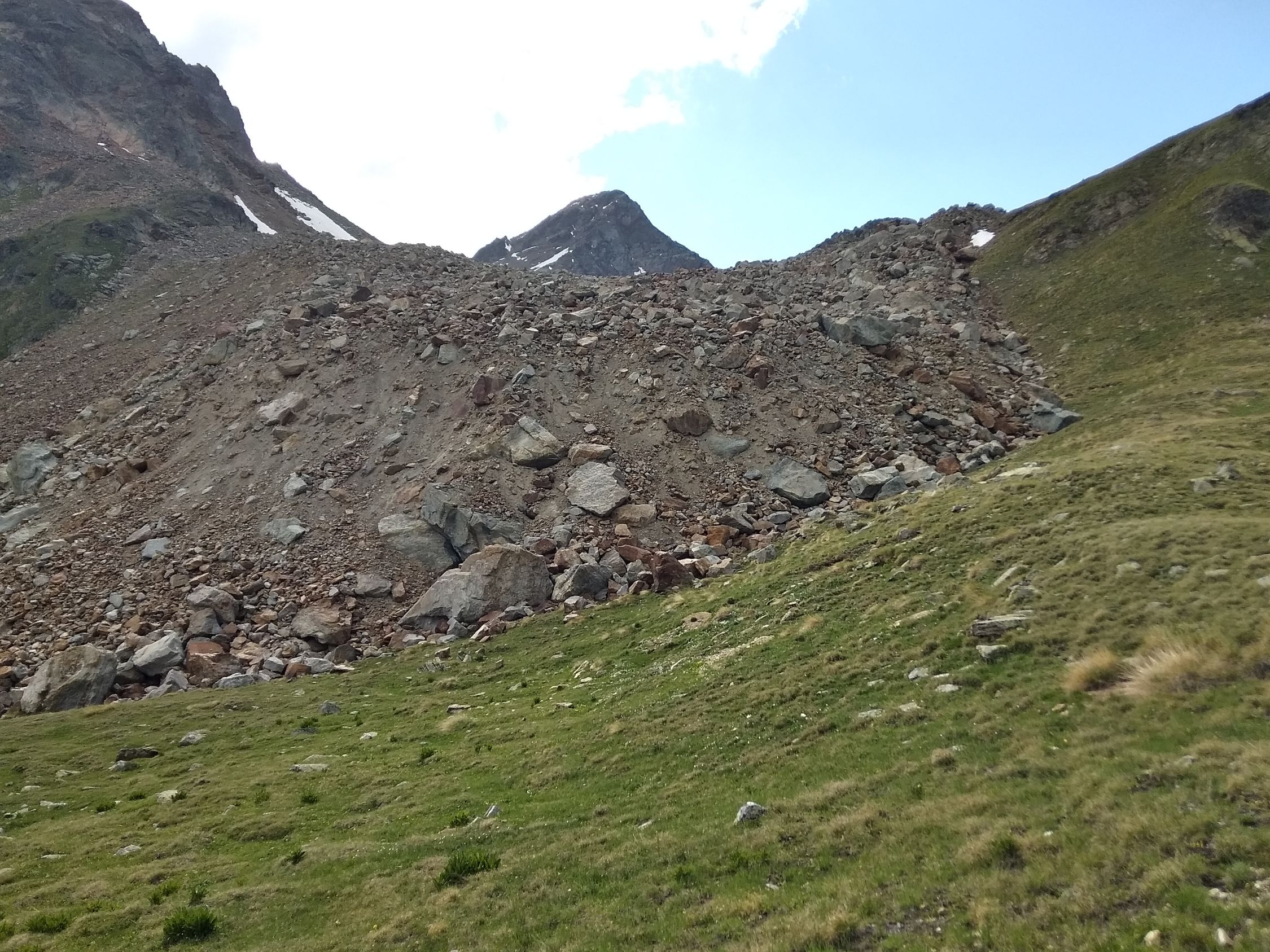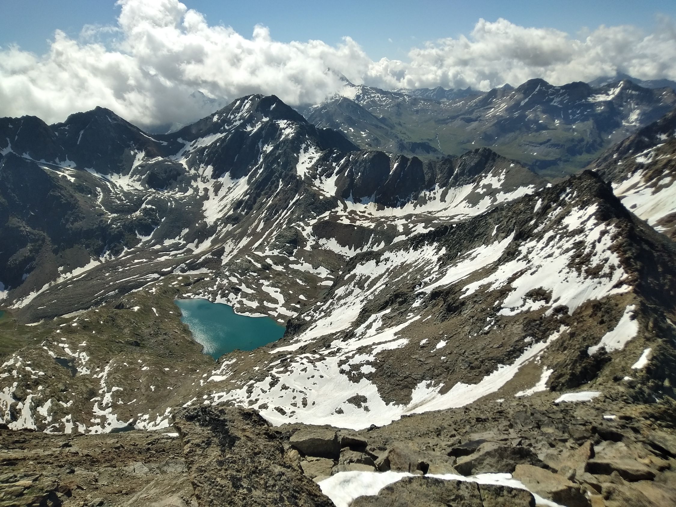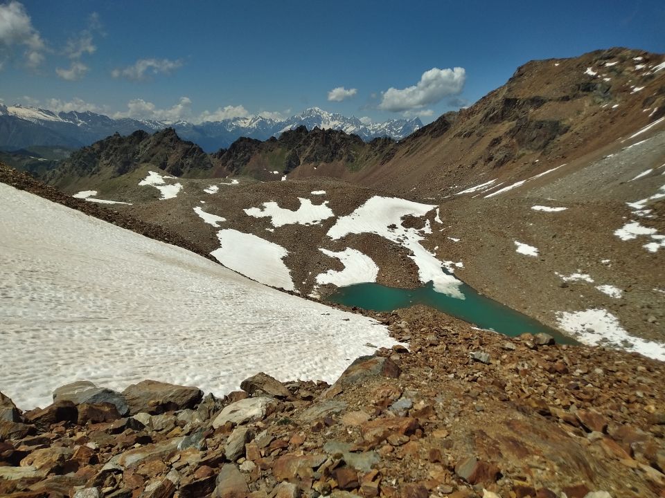 Wir sind im Rahmen einer viertägigen Hüttentour über den Colle d'Arbolle und den Col des Laures zur nigelnagelneuen Grauson - Hütte abgestiegen. Witzig sind die Seen auf insgesamt drei Geländestufen.