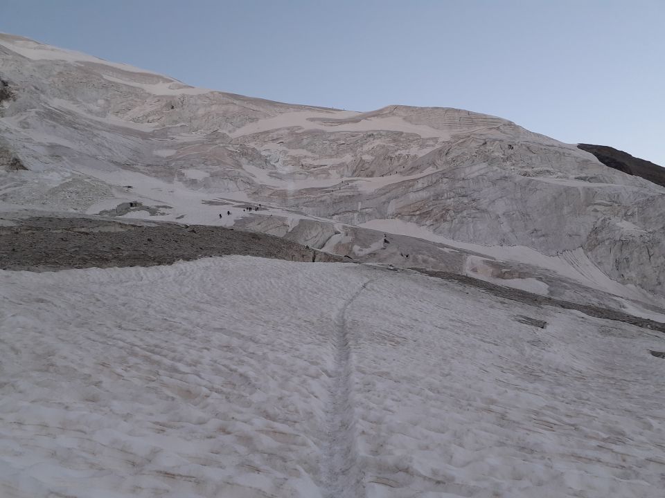 Vorweg: die Normalroute von Hohsaas über den Triftgletscher erscheint uns durch die Passage unter den Eisabbrüchen heikel.