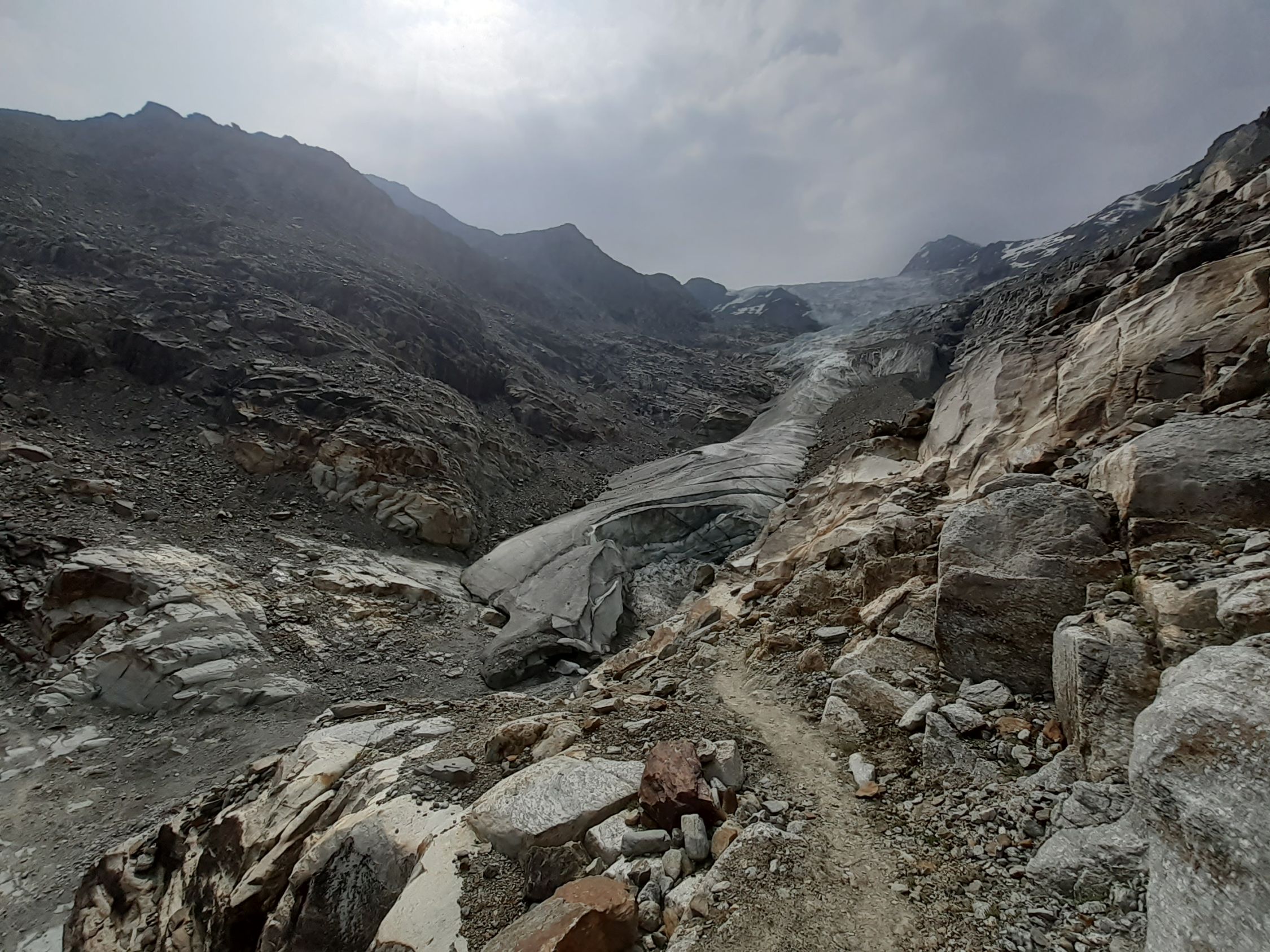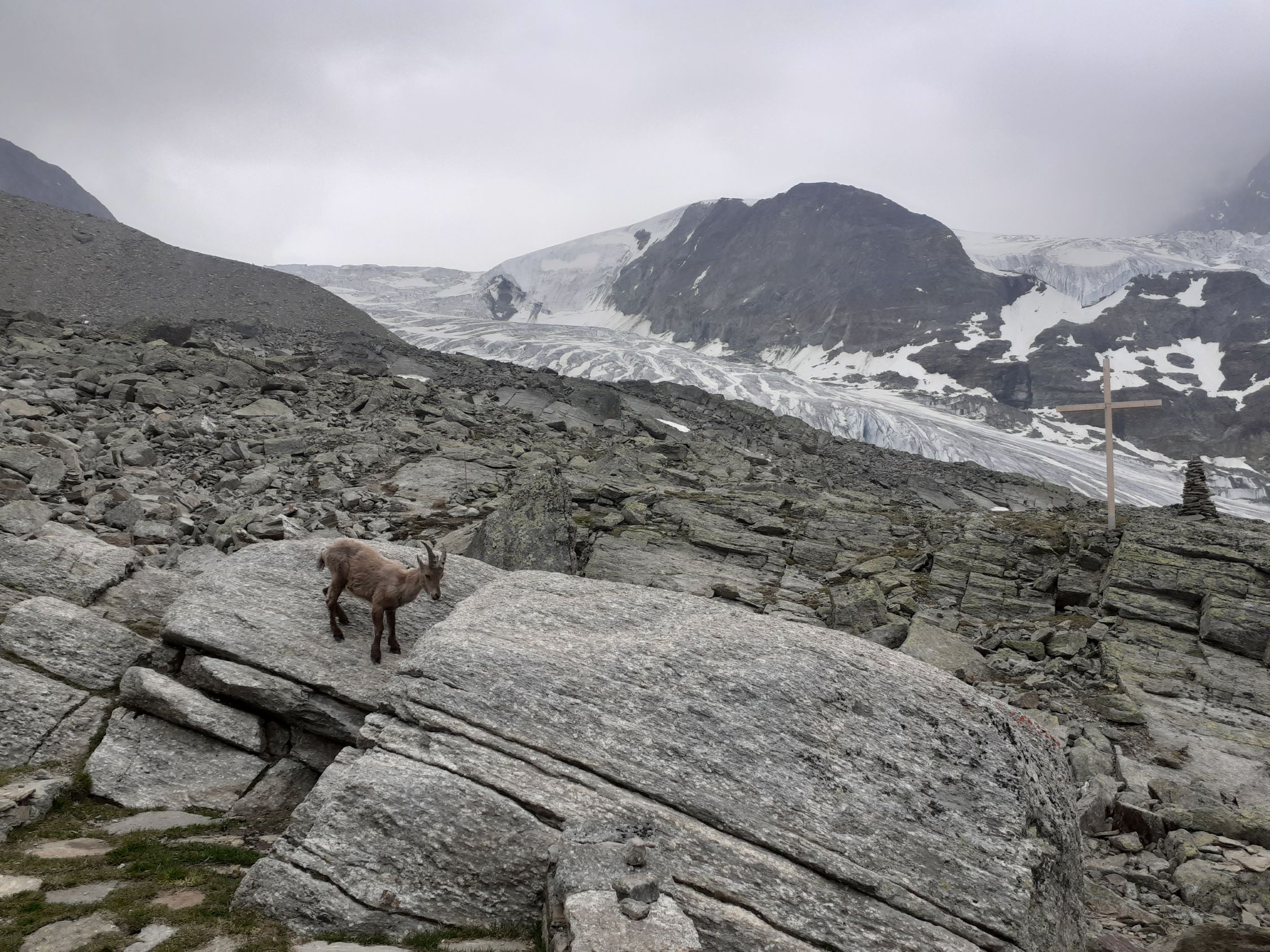 Der Weg ohne Gletscherquerung ist neu und einige Markierungen bzw. zusätzliche Befestigungen waren noch in Arbeit.