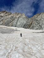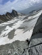Kluft zwischen Fels und Eis recht gross aber mit etwas Mut noch machbar. Ansonsten top Verhältnisse, wenn keine anderen Seilschaften in der Route (Steinschlag-Gefahr).