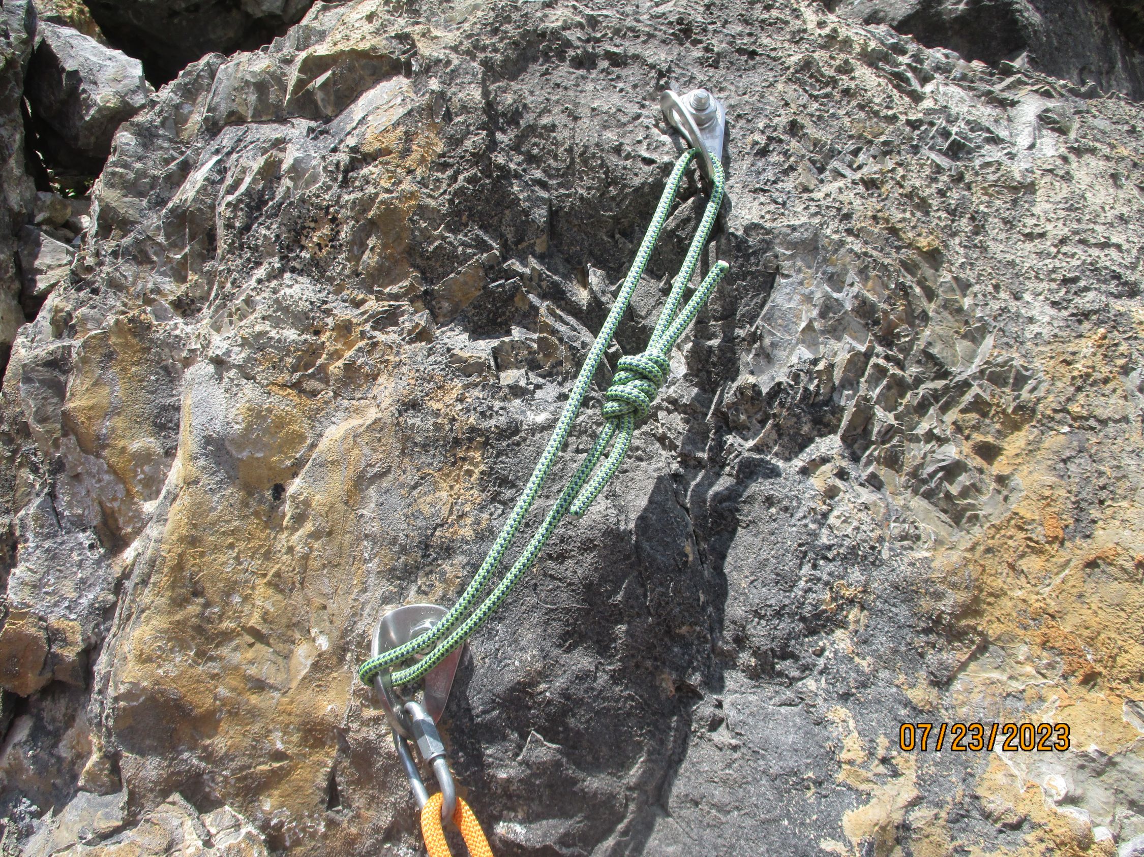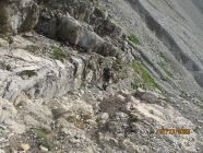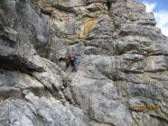 Nicht ganz triviale Routenfindung! Unser mitgeführtes 30-m-Seil erwies sich als sichere und komfortable Möglichkeit, im Abstieg über die Kletterstellen hinweg abzuseilen, anstatt heikel dort abklettern zu müssen. Sämtliche Passagen sind mit gebohrten Abseilständen versehen.