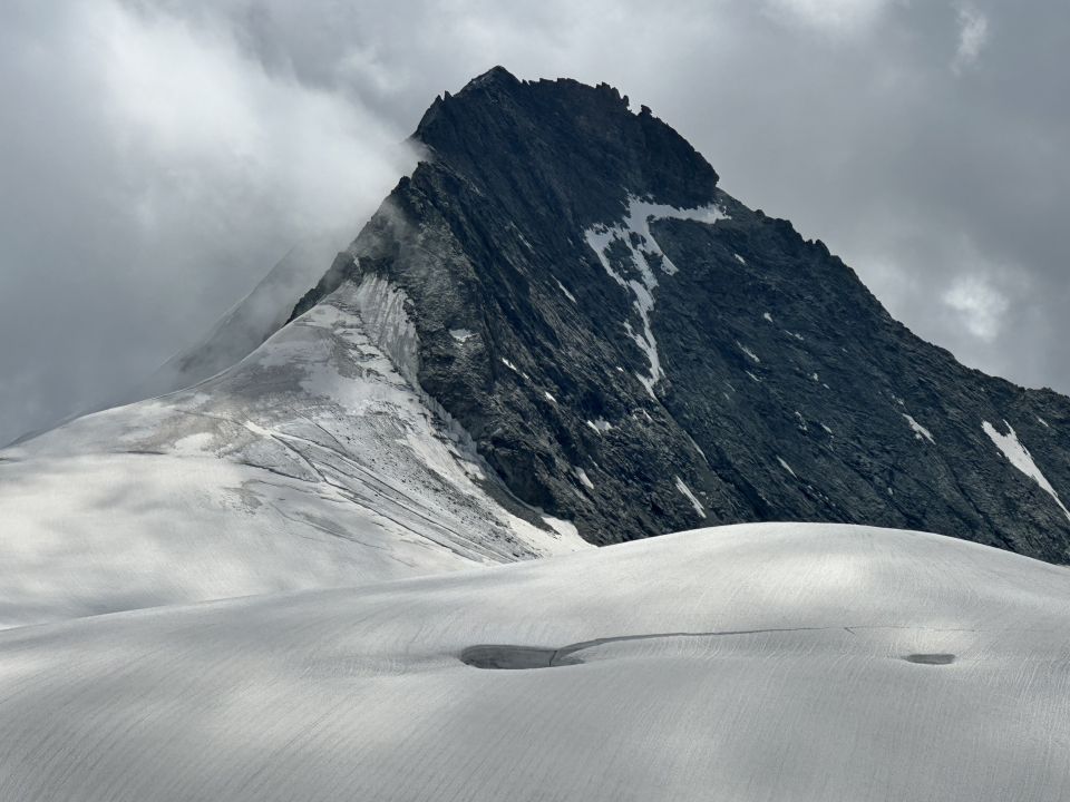 Umgekehrt, weil der Zustieg zum Vorgipfel heikel und Stein schlägig ist. Der Zustieg zum Vorgipfel 3848m kann nicht empfohlen werden. Nur noch im Frühsommer, wenn genügend Schnee vorhanden zu empfehlen.