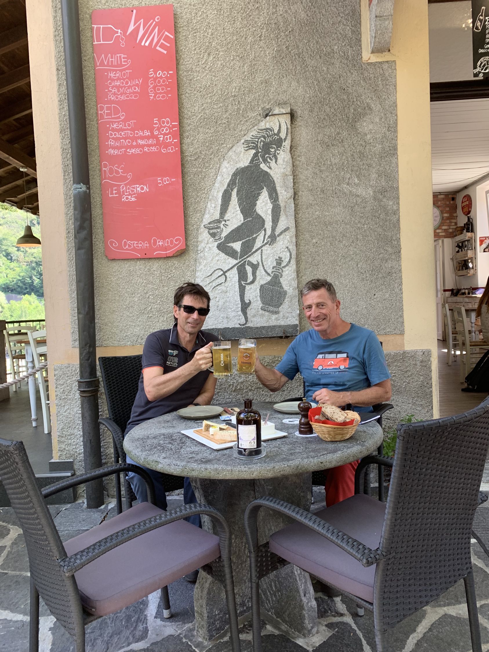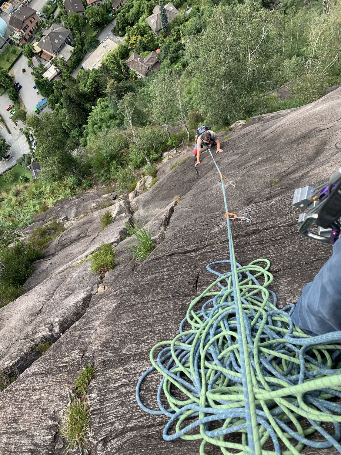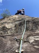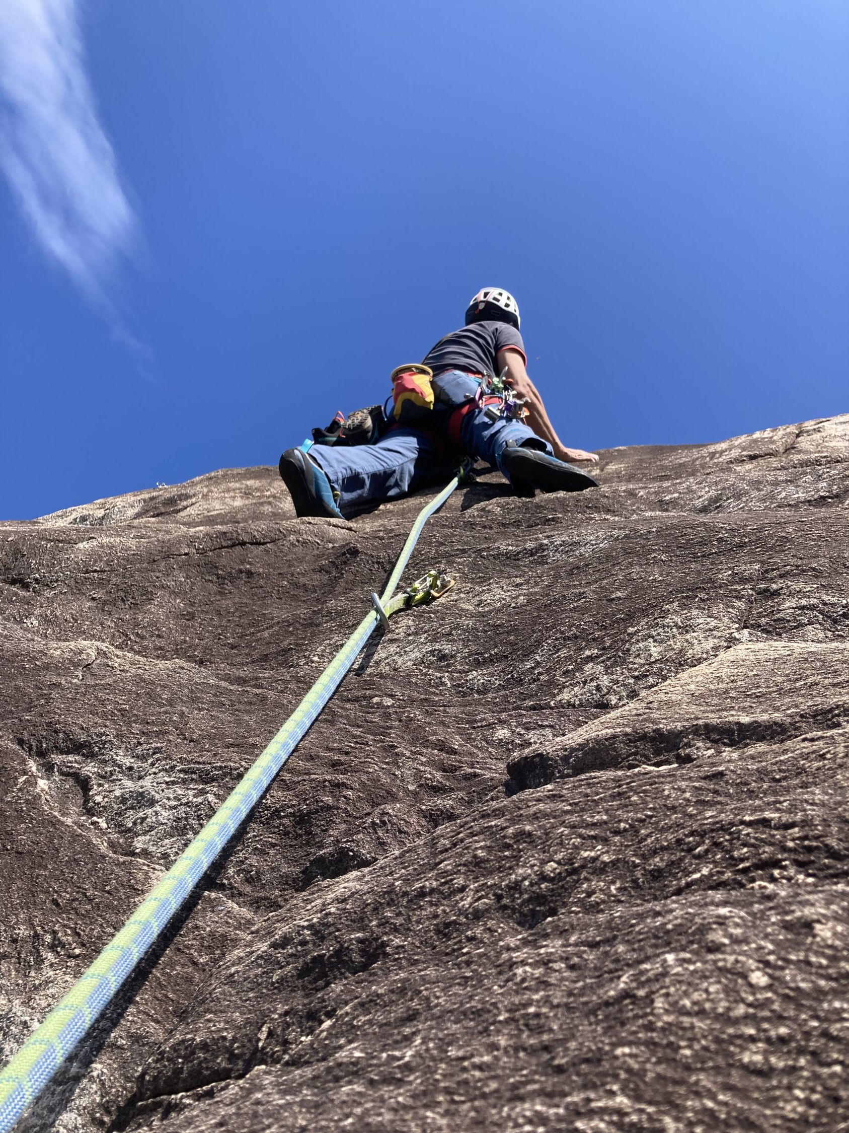 Tolles Abenteuer mit Fredi an unserem so geliebten Rovine oberhalb von Ponte Brolla. Das mittelmäßige Wetter im Norden hat noch ein paar andere Seilschaften rübergespült. Die haben aber nicht gestört da auf anderen Routen unterwegs. Und nach der 3. SL Ist man meistens alleine unterwegs. Nachher noch ein feines Panasch und ein Plättchen im Orrido dem coolsten Grotto der Gegend wo man sich bei Brasilianischen Klängen wieder jung fühlen darf