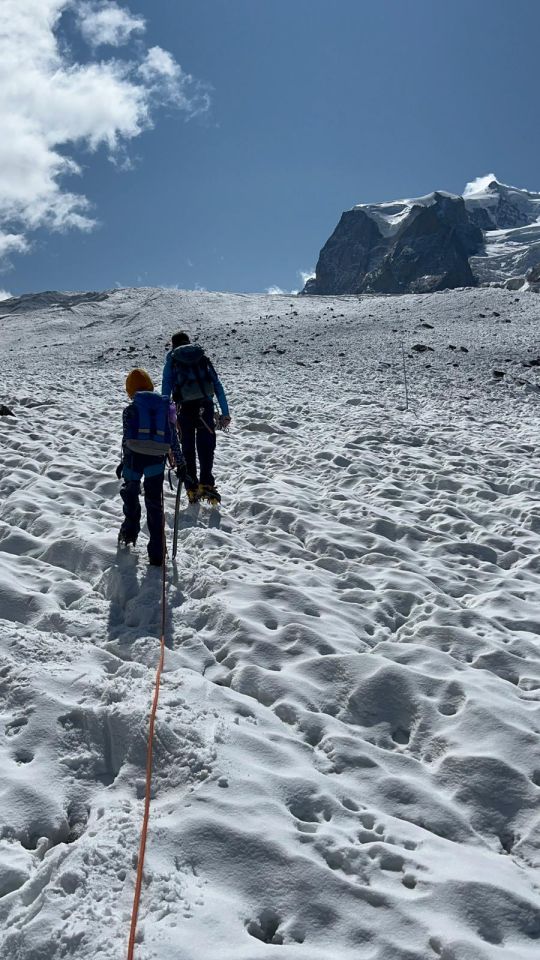 Der Gletscher ist am anfang wenig müsham zu gehen, sehr puckeli. Dan schön zum gehen mit etwas Spalten.