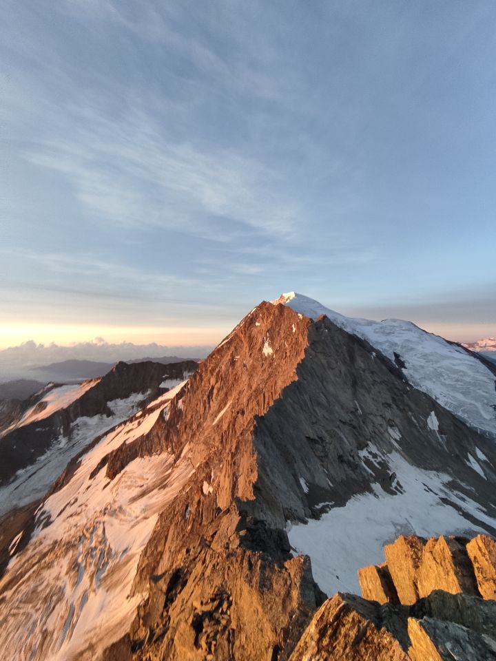 Start um 3:30 Uhr von der Weissmieshütte (wie immer sehr freundlich und viele nützliche Infos zur Tour ). Hohsaasgletscher im unteren Teil blank, oben Firn , hart gefroren. Grat wieder schneefrei und problemlos ohne Steigeisen zu klettern. Wenig Wind, mit der Sonne nicht zu kalt. Einige Seilschaften am Grat unterwegs, verteilte sich aber gut , sodass man sich nie in die Quere kam. Weissmies Nordgrat wurde auch von einigen Seilschaften gemacht, sah ebenfalls sehr gut aus. Abstieg über die Normalroute mit einigem Steinschlag da sehr viele Leute unterwegs waren.