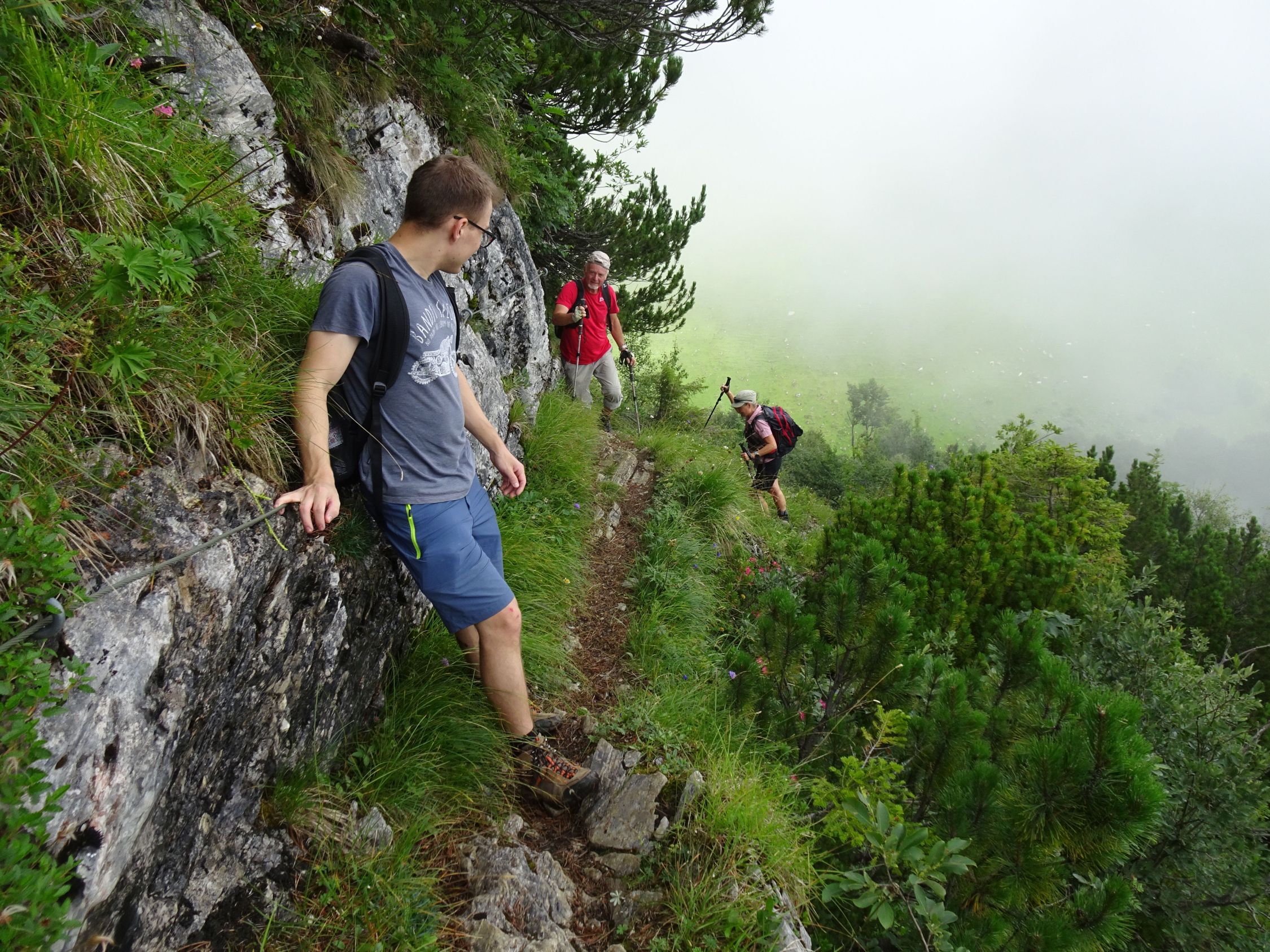 Wanderweg von Brüsti nach Waldnacht und weiter steil durch den Wald feucht und rutschig. Oberhalb Waldgrenze bis Gipfel trocken.