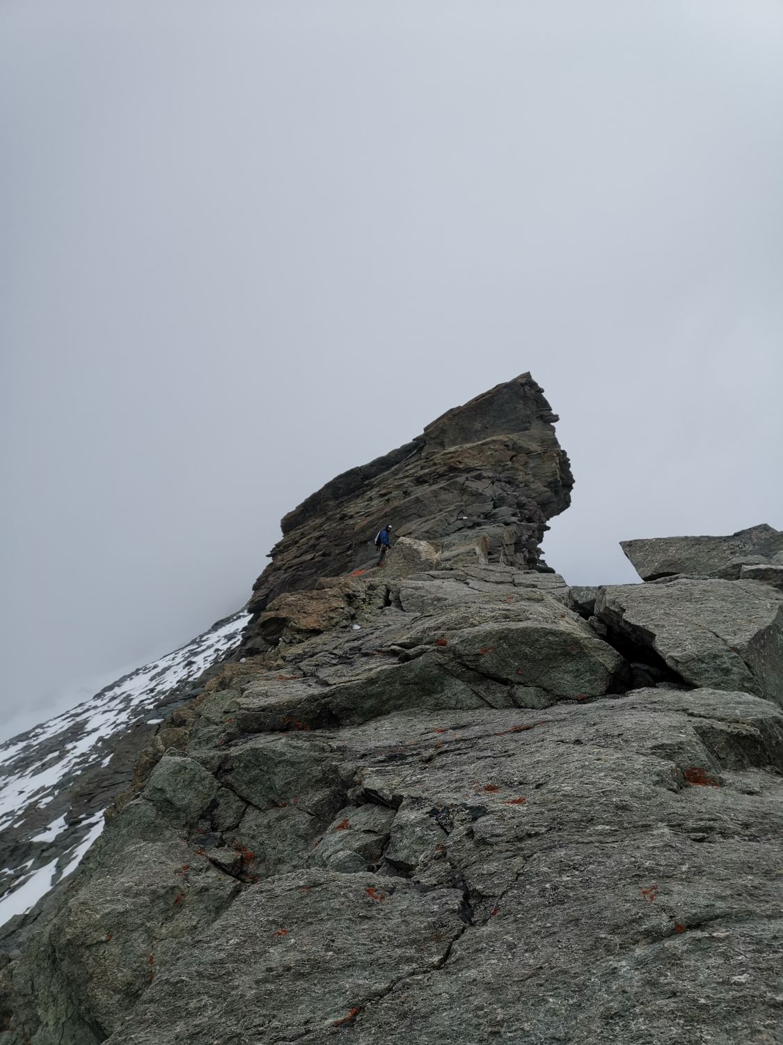 Einzig bei der Umgehung des grossen Gendarme waren einige wenige Stellen vereist. Zusammen mit dem verschneiten Couloir sind hier Steigeisen auf jeden Fall angezeigt.