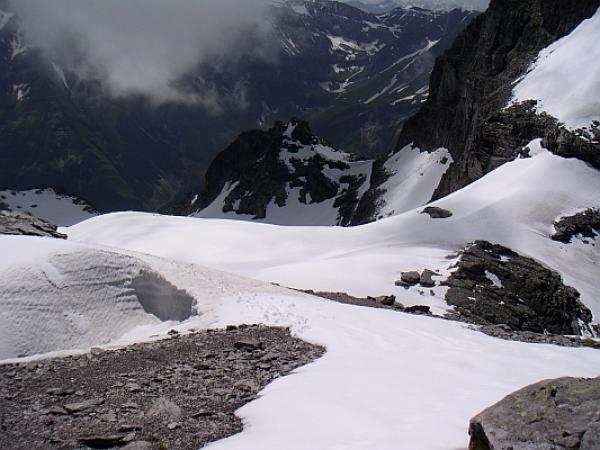 Bis Leglerhütte schneefrei. Dann einige grössere Altschneefelder mit gutem Trittschnee. Steigeisen nicht erforderlich. Die Geröllmulde in die Chärpfscharte sehr durchnässt und rutschig. Vorsicht ist geboten. Dicht unter dem Gipfel leichte Kletterei.