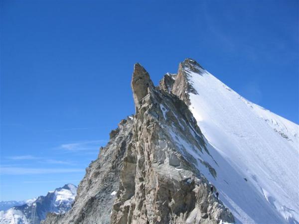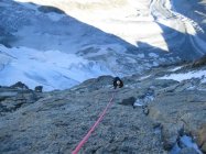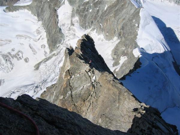 Überschreitung, Ausgangspunkt, Arbenbiwak (gut ausgestattet mit Gaskocher), Aufstieg über Arbengrat (WSW-Grat, ZS, III+), Schneereste auf dem Band (Rampe) können links umklettert werden, danach schöne Gratkletterei im festen Fels, schneefrei. eine Seilschaft hat auch die Südwand geklettert, Abstieg über Normalweg ONO-Grat (viele Abseilstellen vorhanden) und Wellenkuppe zur Rothorn-Ht.