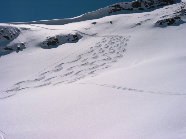 unten im Wald super beim Aufstieg und beid er Abfahrt. zum Teil sehr stark aufgesulzen aber vom Gipfel nördlich hinunter haben wir Pulver gefunden.