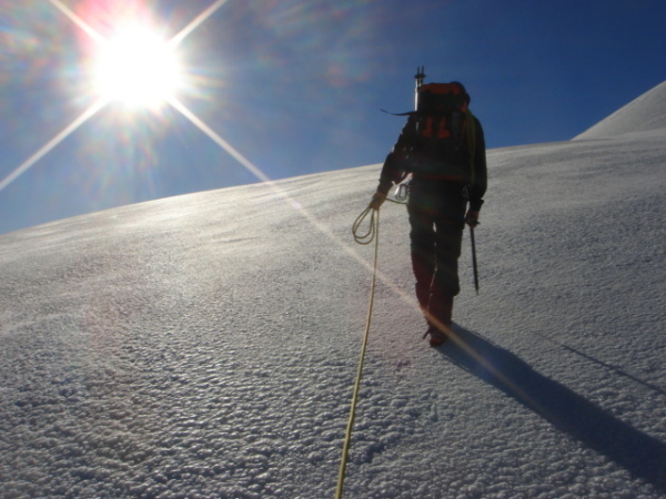Weitgehend sehr gute Verhältnisse. Im Couloir mit dem (Stahl-)Fixseil waren Steigeisen nötig. In der Steilstufe liegt etwas Schnee, und der letzte Teil des Grates ist durch den Neuschnee recht ausgesetzt