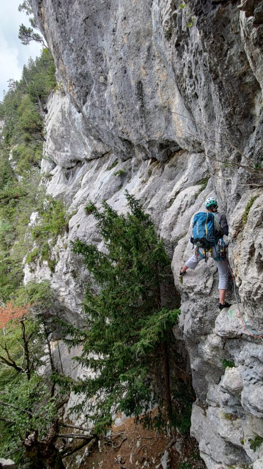 Verhältnisse waren super, praktisch alles trocken, nur am Quergang waren einzelne Stellen feucht. Die Bewertungen erschienen mir fair, nur die 5c+-Variante nach dem Routenbuch fand ich einfacher.