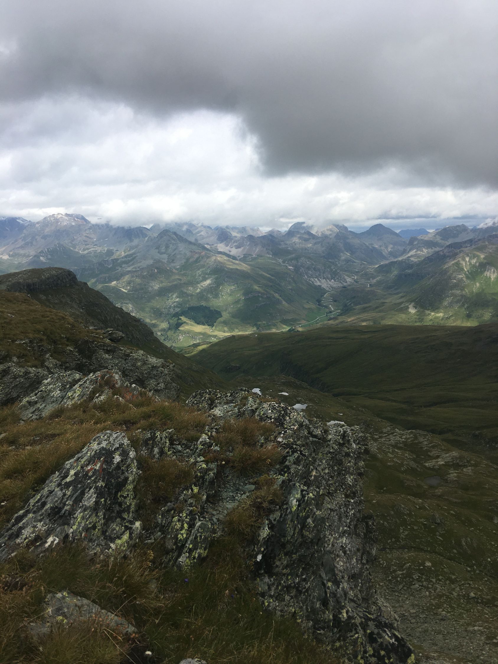 Una bellissima vista sul passo dello Julie. Tempo ventoso e fresco, solo poco sole.