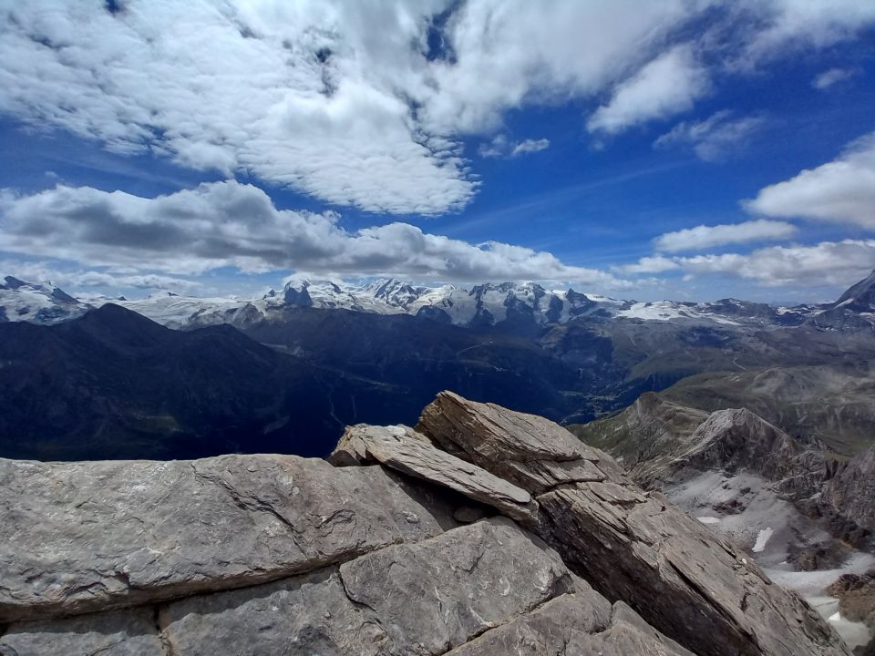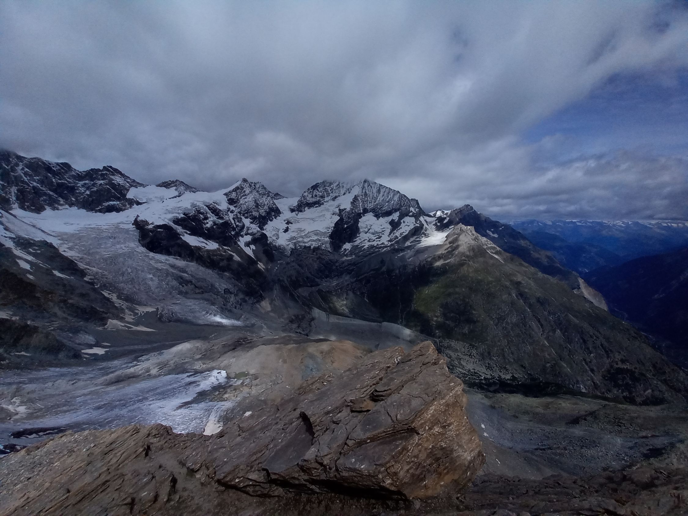 Gletscher ist abschnittweise recht ausgeapert und entsprechend rutschig, nur mit Trailschuhen wäre yours truly die Querung zu heikel gewesen. Don't try this at home kids! Es sind aber keine Spalten erkennbar. Nicht auf dem Gletscher herumlungern resp. nicht zu nah an die Platthornwand: Steinschlag! Schlussaufstieg problemlos, da alles aper und trocken. Tolle Aussicht.