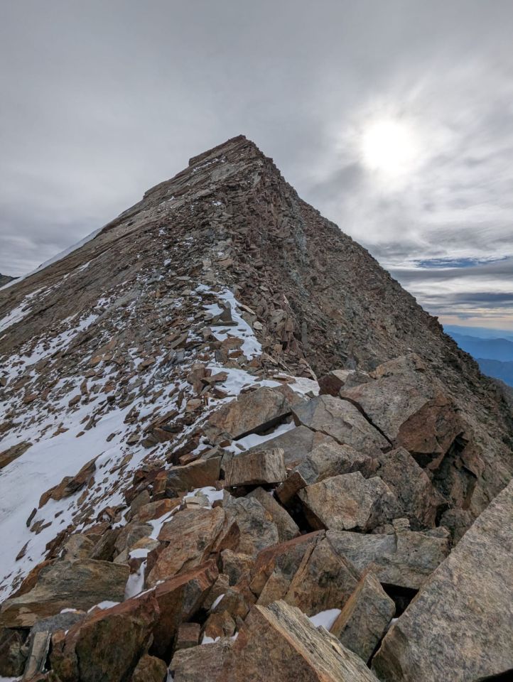 Alles trocken, nur kleinste Schneeresten auf dem Grat, welche aber überhaupt nicht stören. Auf dem Gletscherhighway zum Gipfel muss eine Steilstufe passiert werden, mit etwas Erfahrung im Steigeisen gehen problemlos machbar (gute Tritte vorhanden). Abstieg über den S-Grat tiptop.