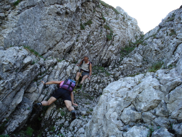 Ab Hilferenpass 1290m der Alpstrasse entlang via P.1401 - Toregg - Tor. Weiter auf Wegspuren gegen den Tällen hinauf, auf ca 1500m unterhalb des Felsbandes zu P.1545 hinüber gequert. Ab da weglos steil hinauf auf den Tällen 1812m. Die Überschreitung dieser Felsbastion gestaltete sich als recht schwierig, deshalb stiegen wir durch ein steiles Coulvoir hinab und querten zum Bergweg P.1750 hinüber. Weiter via P.1913 - auf den Strick 1946m. Abstieg über den recht ausgesetzten Grat zu P.1886 hinunter. Nach kurzem Boxenstop gings weiter anfangs dem Bergweg entlang, später weglos über spitzige Karrenfelder auf die Hächle 2089m. Abstieg via Tierweid, P.1934, Gläcken, P.1563, zur Vord.Bättenalp hinab. Dort holte uns ein "Coiffeur" ab.