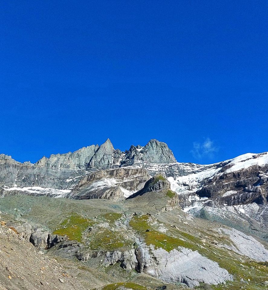 Wir wurden vom liegen gebliebenen Neuschnee überrascht, welcher ab 2900m noch reichlich vorhanden war. Zustieg vom Taminser Gletscher auf den Mittelgrat guter Trittschnee ( morgen wohl nicht mehr), Mittelgrat schneefrei. Die erste "Seillänge" bis an den Fuss der ersten Schlüsselstelle noch gemacht mit einigem Schnee im Gehgelände. Dann nasser und glitschiger Fels und viel Nassschnee, so dass wir abgebrochen haben. Routinierte Seilschaften wären problemlos weiter, für uns hat es gepasst.