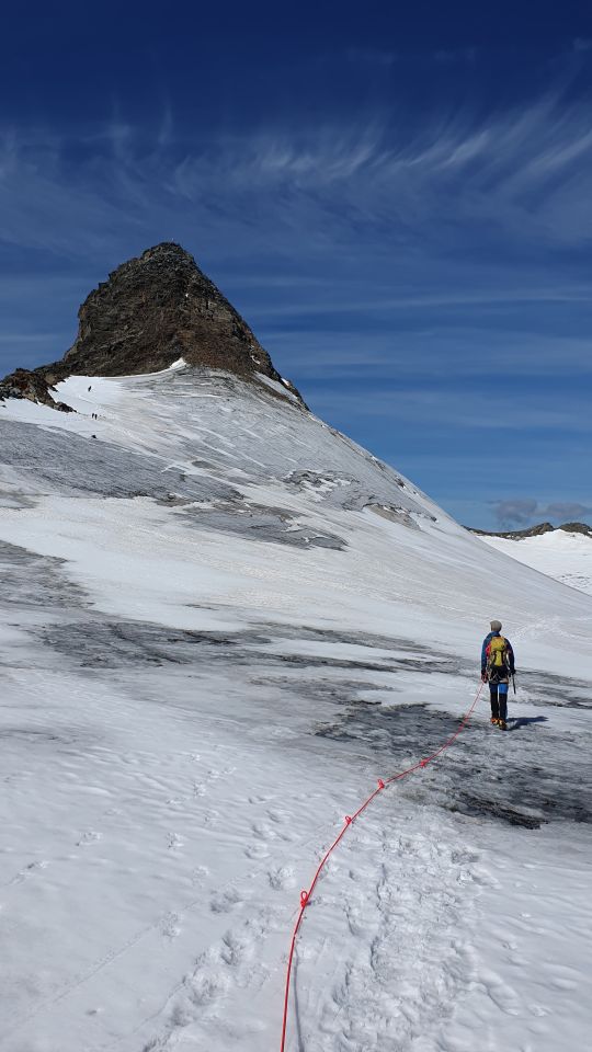 Nur noch wenig Schnee auf den Gletschern, 1-2 Spalten auf dem Sulzenauferner mit ggf bereits schwacher Schneebrücke. Gipfelaufbau aper.