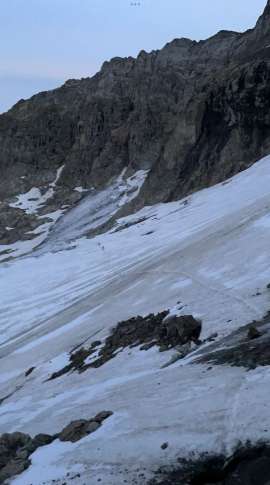 Start an der Glecksteinhütte um 04:15. Über gut markierten Weg, zum (Rest des) Chrinnengletscher. Mit Steigeisen unschwierig überqueren (keine Spalten). Den Steinmännern Richtung Willsgrätli folgen. Wir haben uns fälschlicherweise dann eher links orientiert (unproblematisch) und sind erst später aufs Grätli traversiert. Es liegt noch etwas Schnee in der Passage vom Sattel zum Gipfel, der aber zusehends wegschmilzt. Den Stangen entlang zum Gipfel. Gleicher Weg zurück. Sind alles seilfrei gegangen.