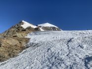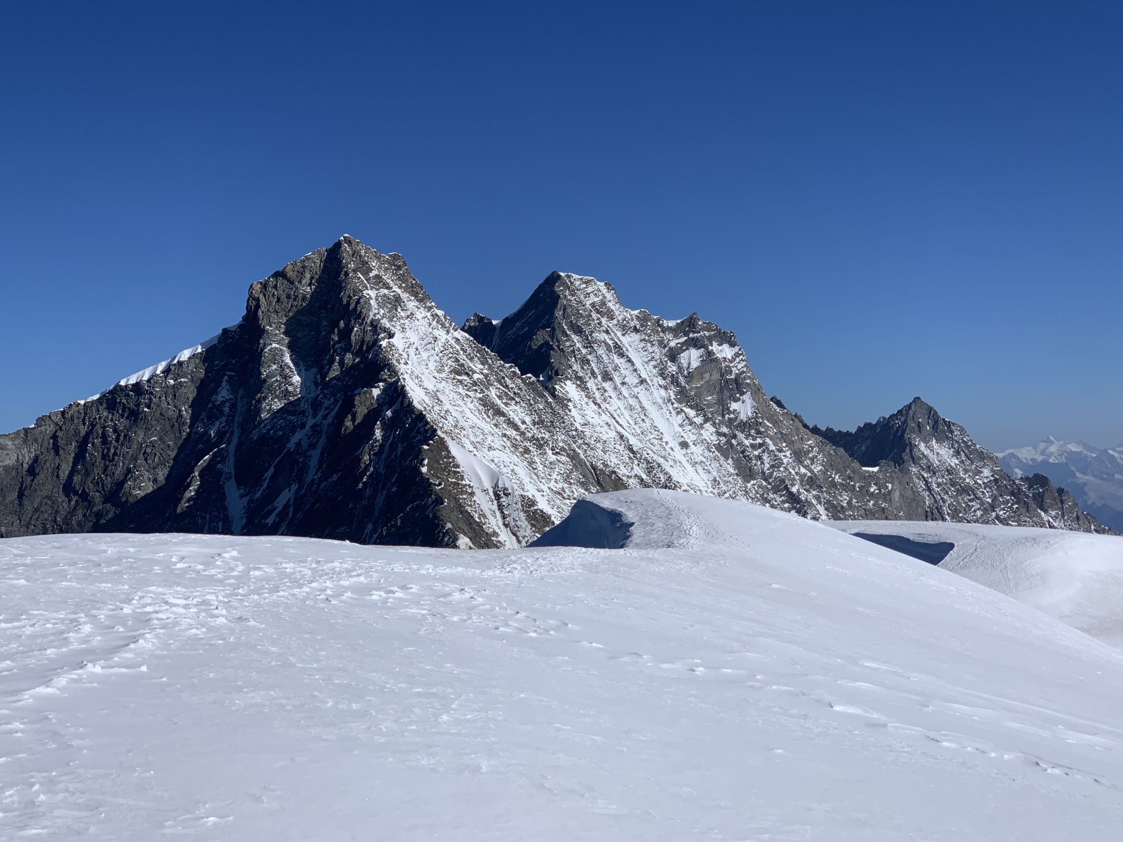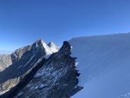 Bei diesen Bedingungen einfachste Zustiegsvariante (WS vs. ZS- über Weingartengletscher). Man erreicht einen höheren Punkt als man letztendlich zur Nacht verbringt, was bei fehlender Akklimatisierung sicher kein Nachteil ist. Ich persönlich fand diesen Zustieg wesentlich angenehmer als jenen vor vielen Jahren über den Weingartengletscher, wobei auch diese Route im Tagesverlauf zwischen 12 und 18 (!) Uhr im Auf- und Abstieg frequentiert war. Die Traverse der Felsbarriere bis P3478 war in meiner Erinnerung heikel (brüchig), der Weingartengletscher, insbesondere bei Neuschnee und den zahlreichen Spalten, unangenehm.