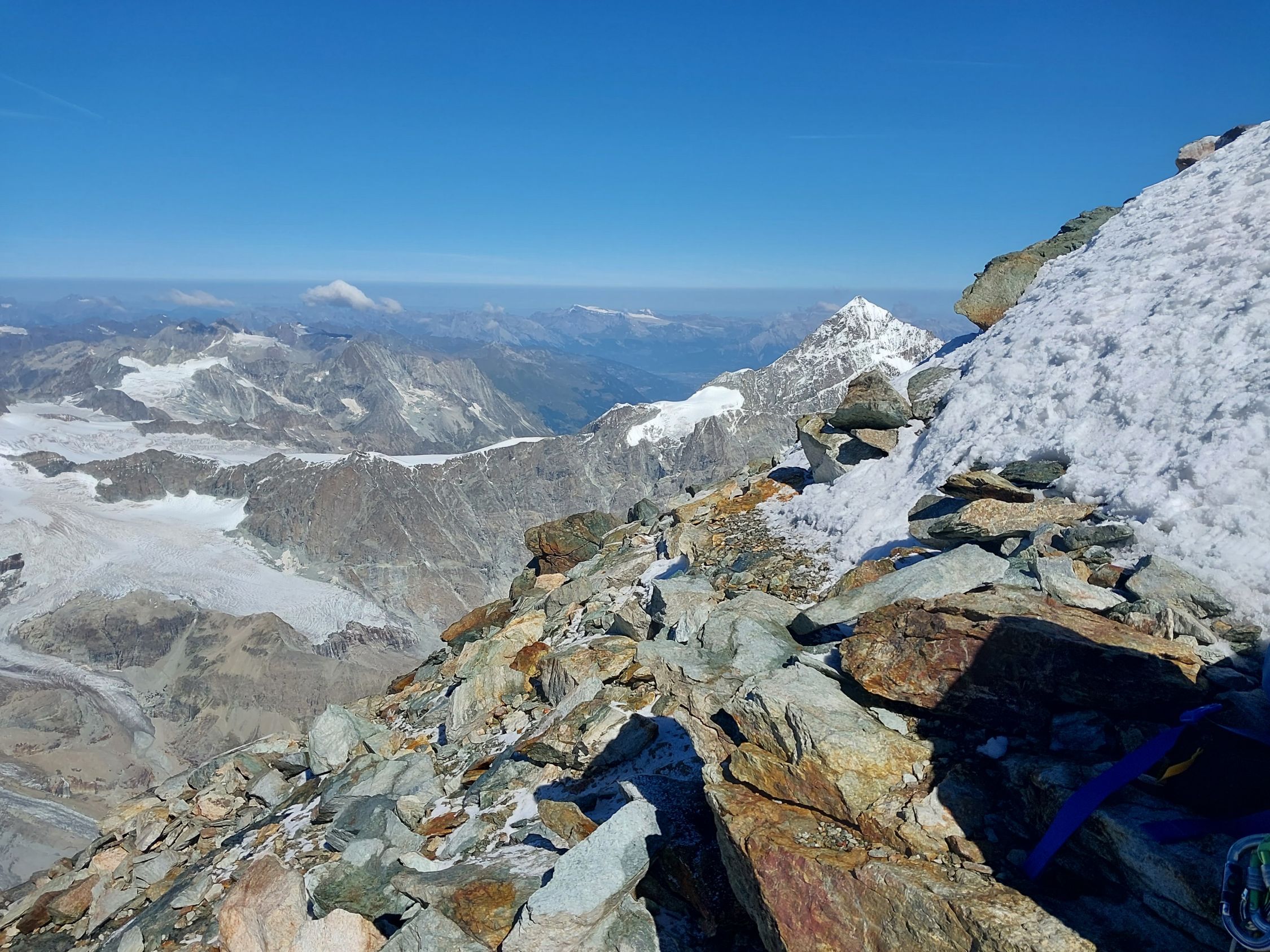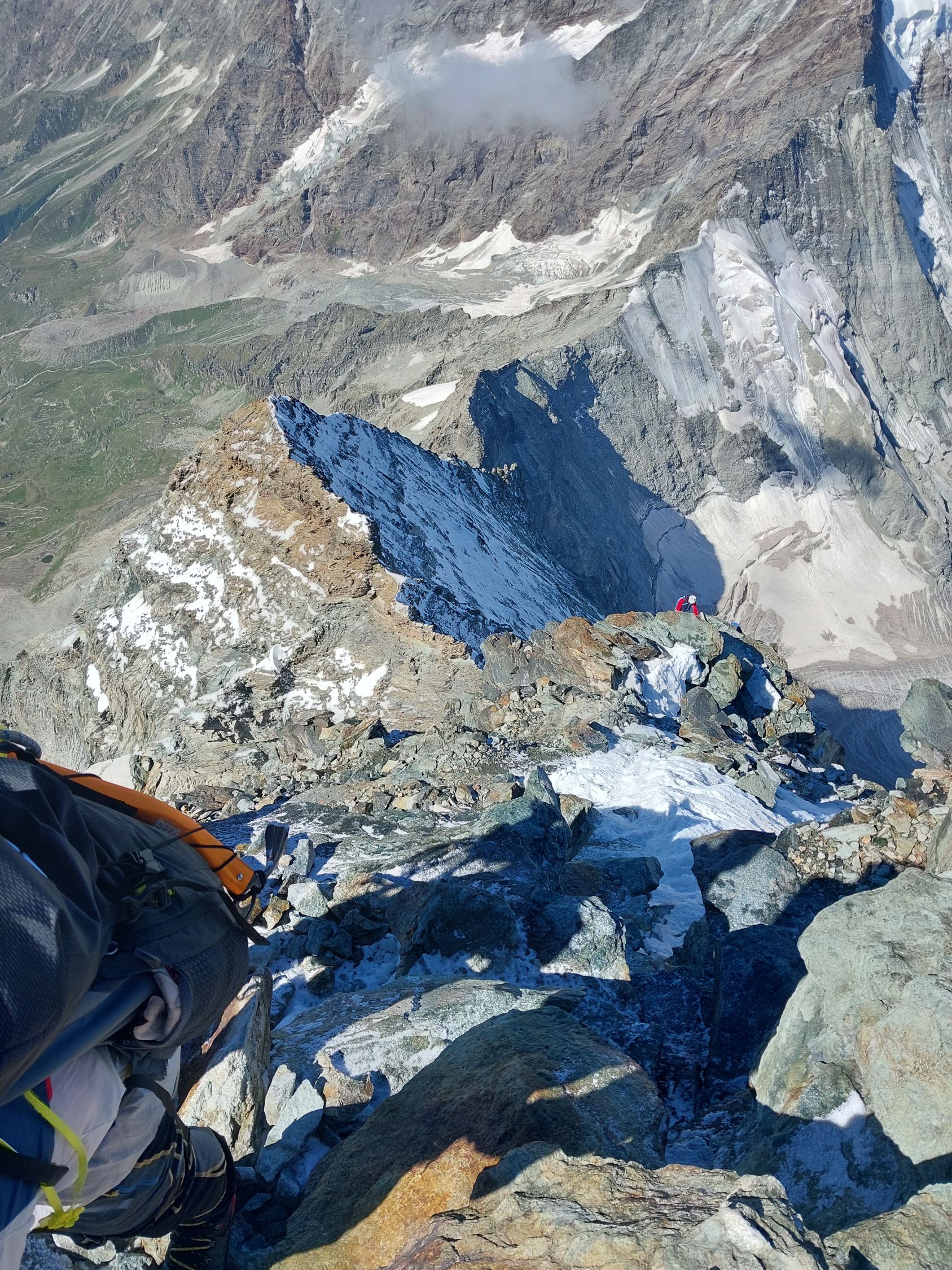 Abstieg über Hörnligrat ebenfalls in guten Bedingungen. Im oberen Teil etwas vereist. Aber kein Problem. Dort aber natürlich Steigeisen notwendig.